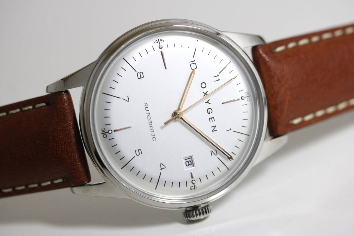 1950~1970年代のクラシカルな雰囲気を漂わせるシンプルなデザイン。 待望の自動巻きムーヴメント搭載モデルです。 シンプルなオキシゲンらしいデザインはそのままに、自動巻きムーヴメントを搭載。 自動巻きムーヴメントには、日本のMIYOTAムーヴメントを搭載。数多くの時計メーカーにも採用されCITIZEN系のムーヴメントになり、安心してお使い頂けます。ケース直径約40ミリのため、男性はもちろんのこと、女性でもやや大きめの時計として着用可能なデザインです。