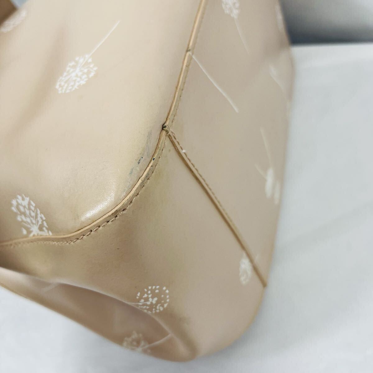 ・ダンデライオンプリントのベージュレザーハンドバッグ。