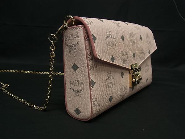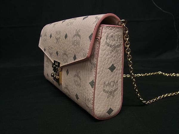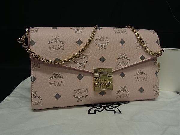 ■極美品■ MCM エムシーエム パトリシア モノグラム ヴィセトス柄 レザー ショルダーバッグ 斜め掛け レディース ピンク系 FP5952
