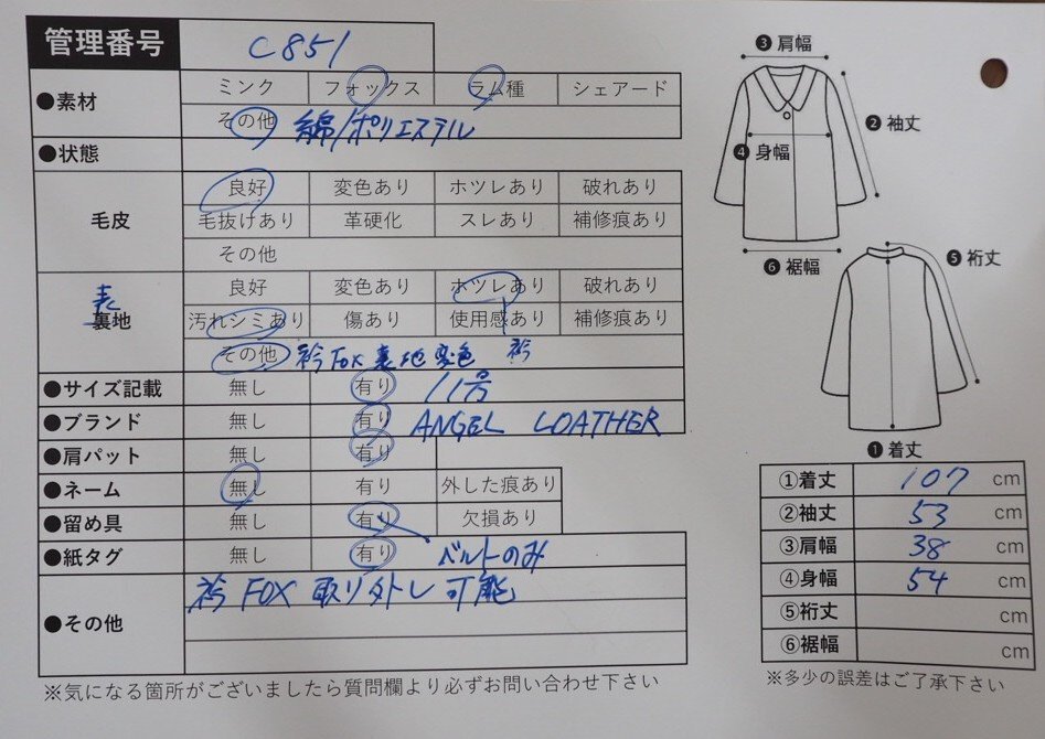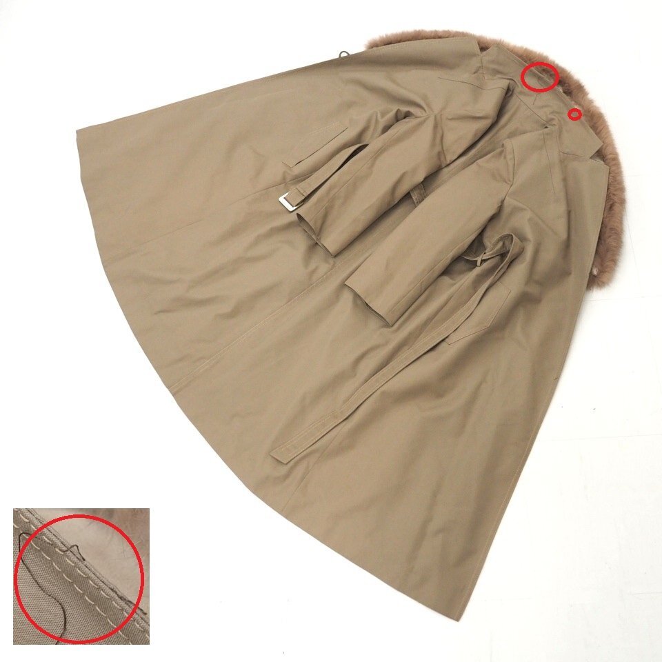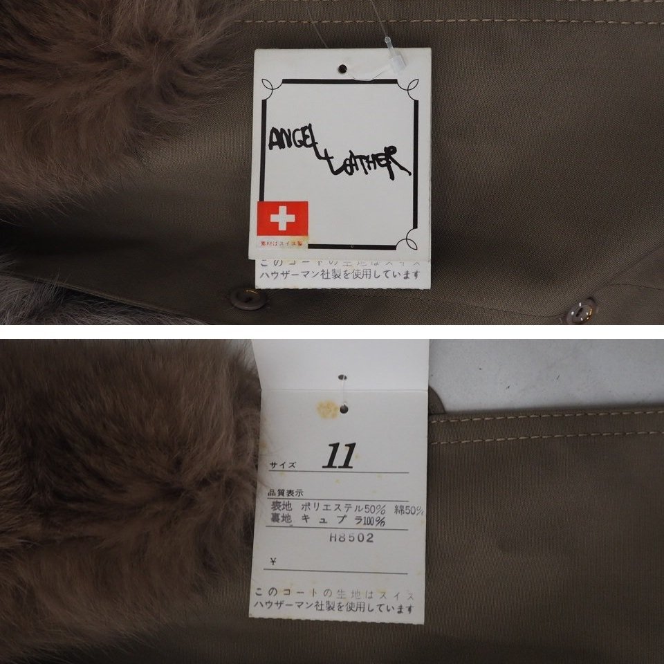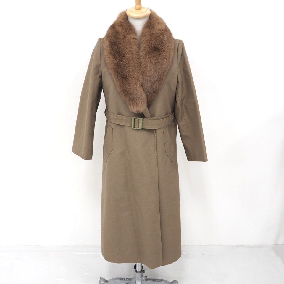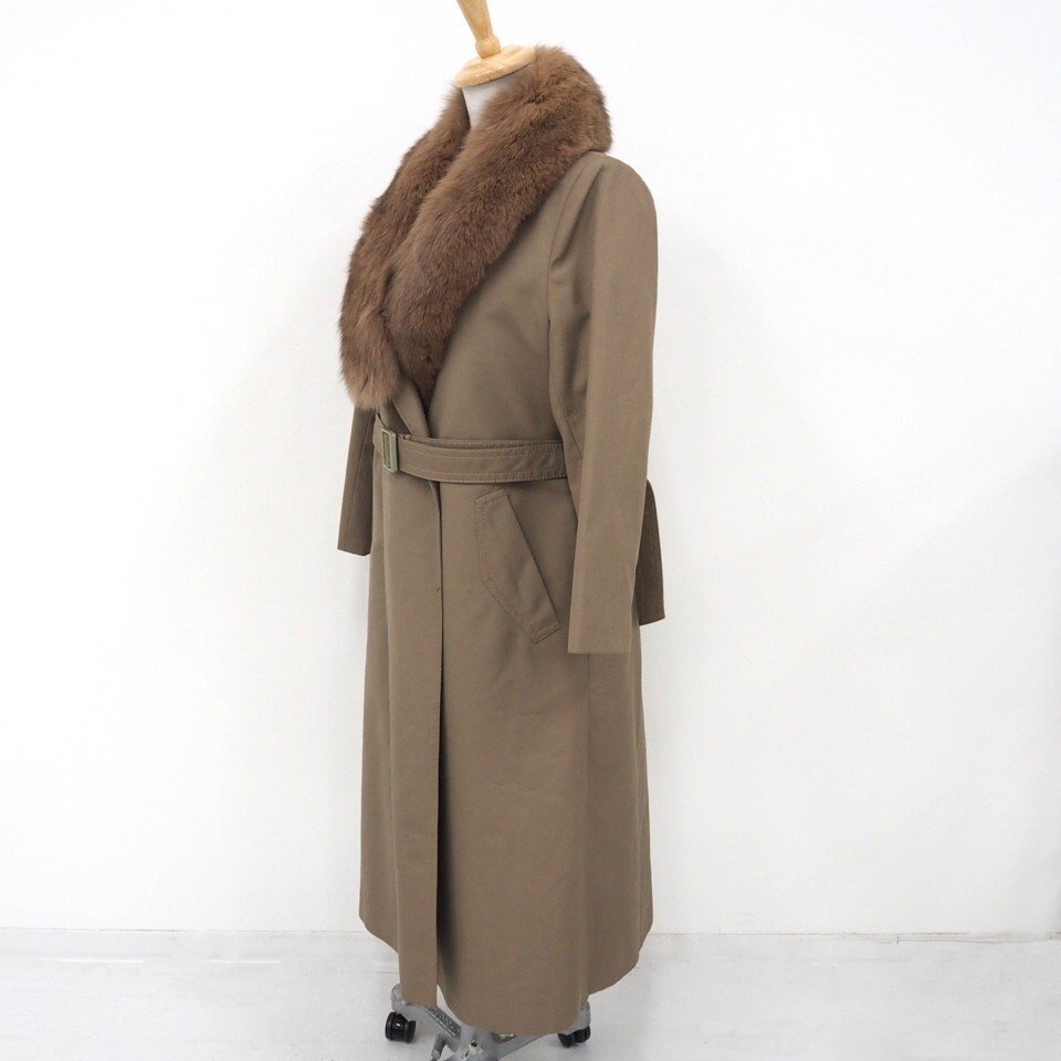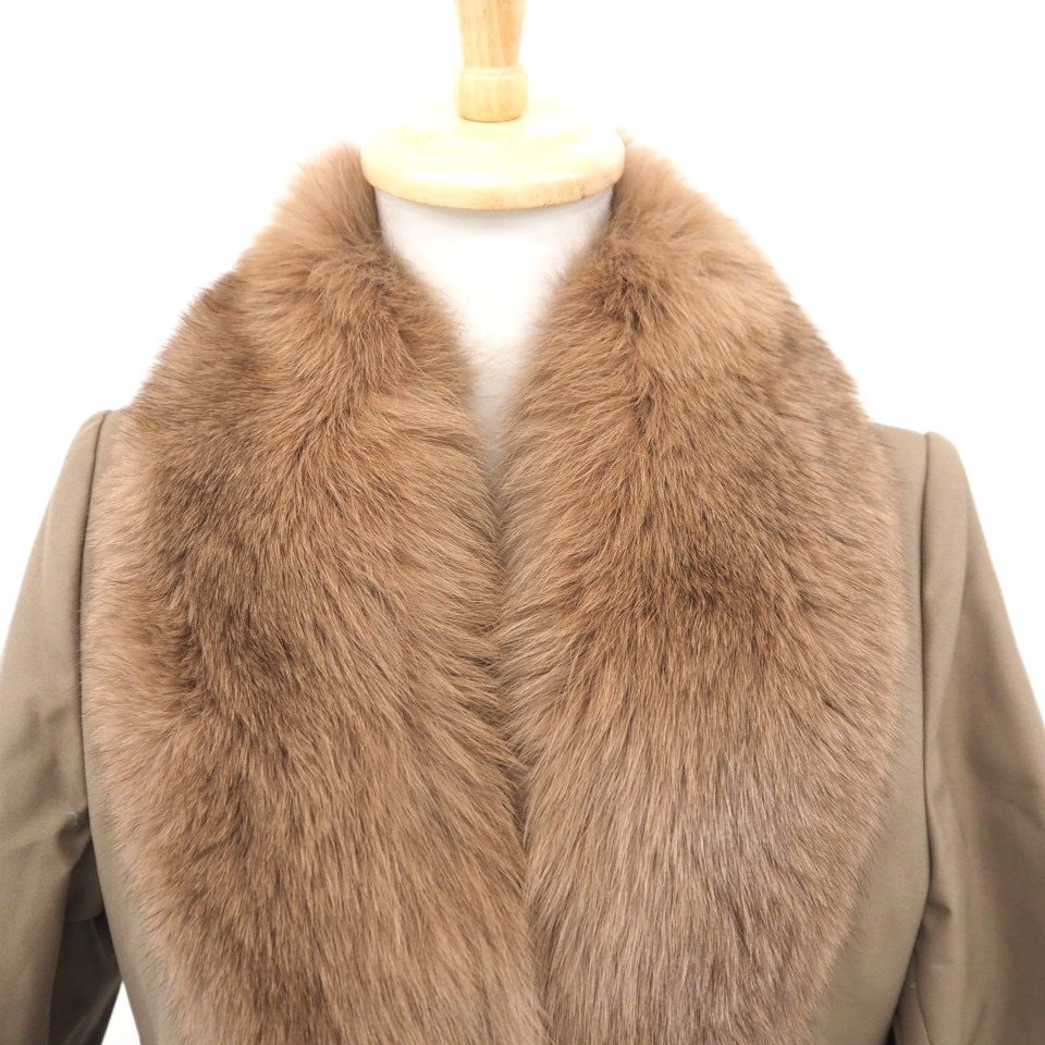 高級毛皮【 \1000~ / ANGEL LOATHER / 衿FOX取り外し可能 】◆綿/ポリエステル/ラム種×フォックス◆ロング丈 107cm◆ブラウン◆11号◆C851