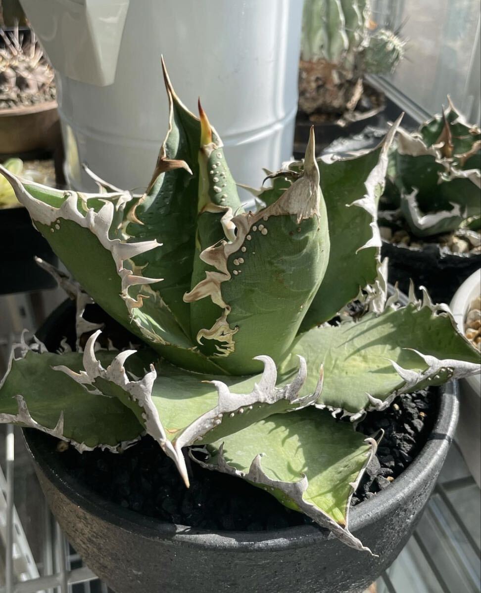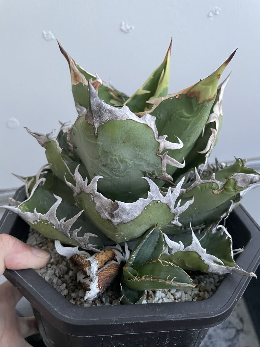1枚目は3年前、 2枚目は現在の草姿です。去年虫害を受けてしまい、特有のブツブツ感が復活しておりませんが、下葉の方のブツブツ感でcok cg01の真贋を見てください。