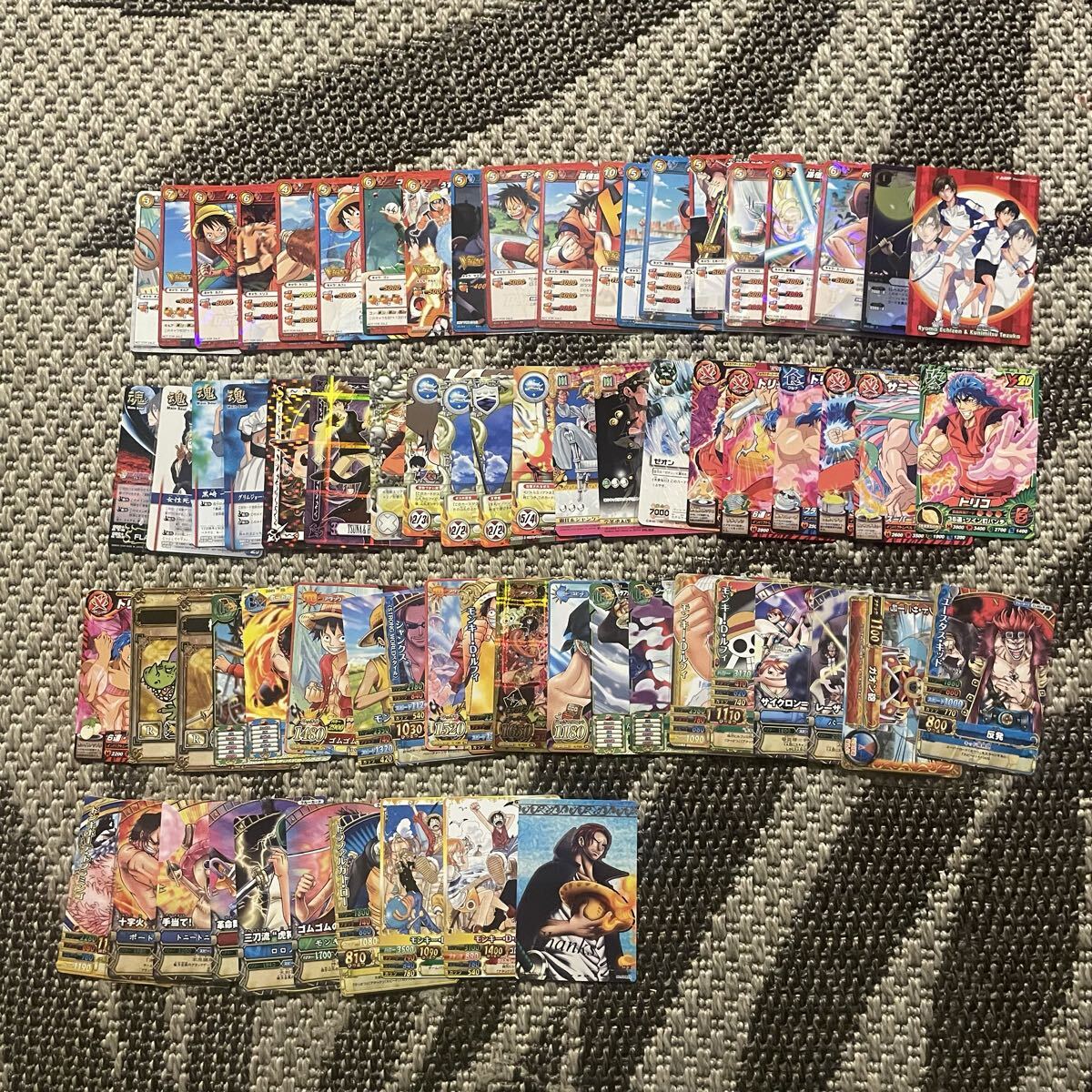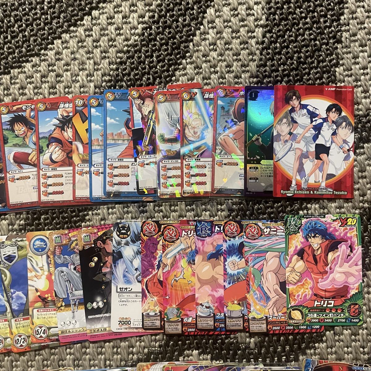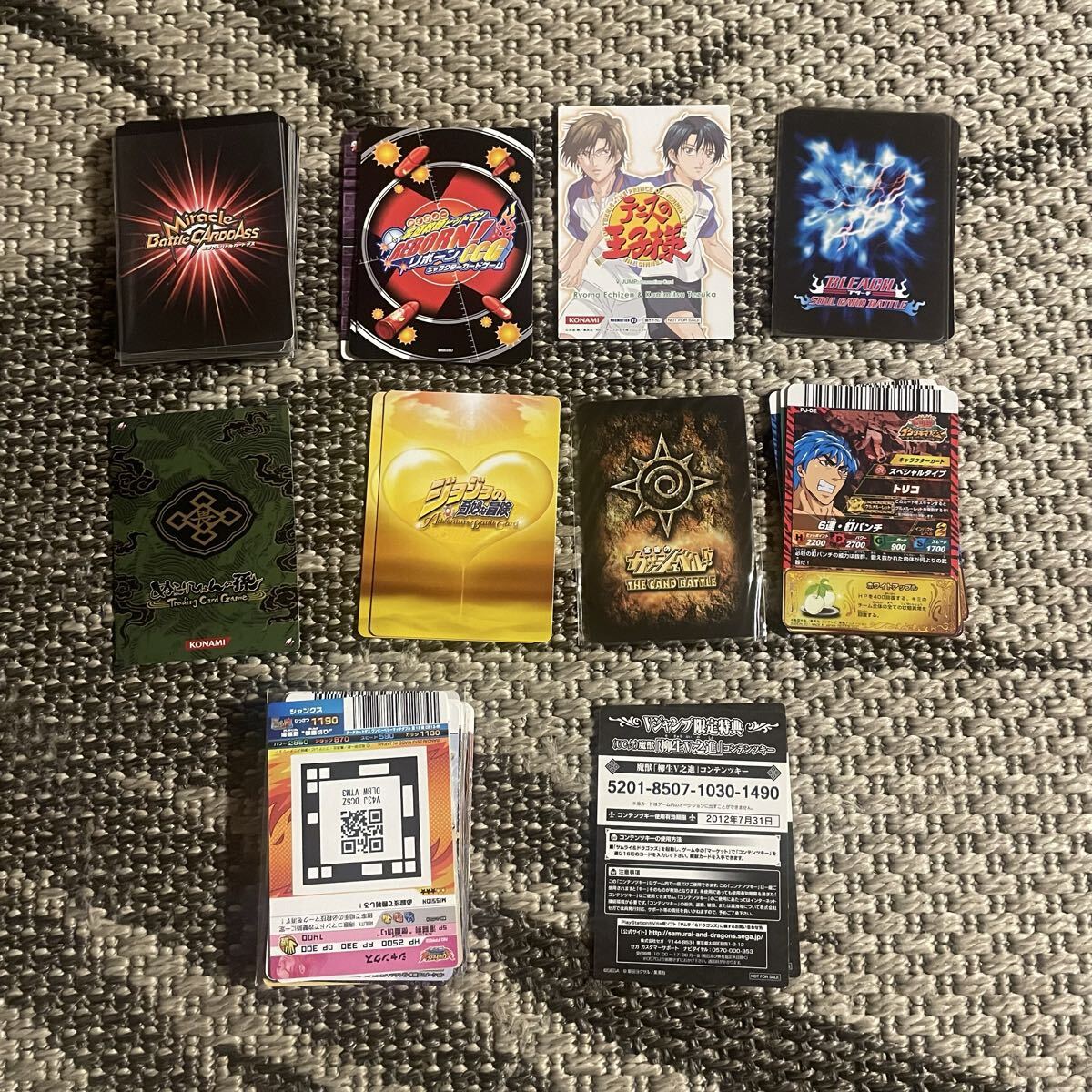 ミラクルバトルカードダス 18枚/ぬらりひょんの孫トレーディングカードゲーム 1枚/テニスの王子様Vジャンププロモーションカード 1枚/BLEACHソールカードバトル 4枚/サザンクロスバトル 2枚/家庭教師ヒットマンREBORN CCG 5枚/ジョジョの奇妙な冒険アドベンチャーバトルカード 2枚/金色のガッシュベル ザカードバトル 1枚/トリコ イタダキマスター 6枚/トリコ 爆狩ジャングルグルメ 1枚/Vジャンプ限定特典カード 2枚/ワンピートレジャーワールド 4枚/ワンピーベリーマッチアイシー 4枚/ワンピーベリーマッチ 7枚/ワンピーベリーマッチダブル 11枚/ワンピースARカードダス 1枚