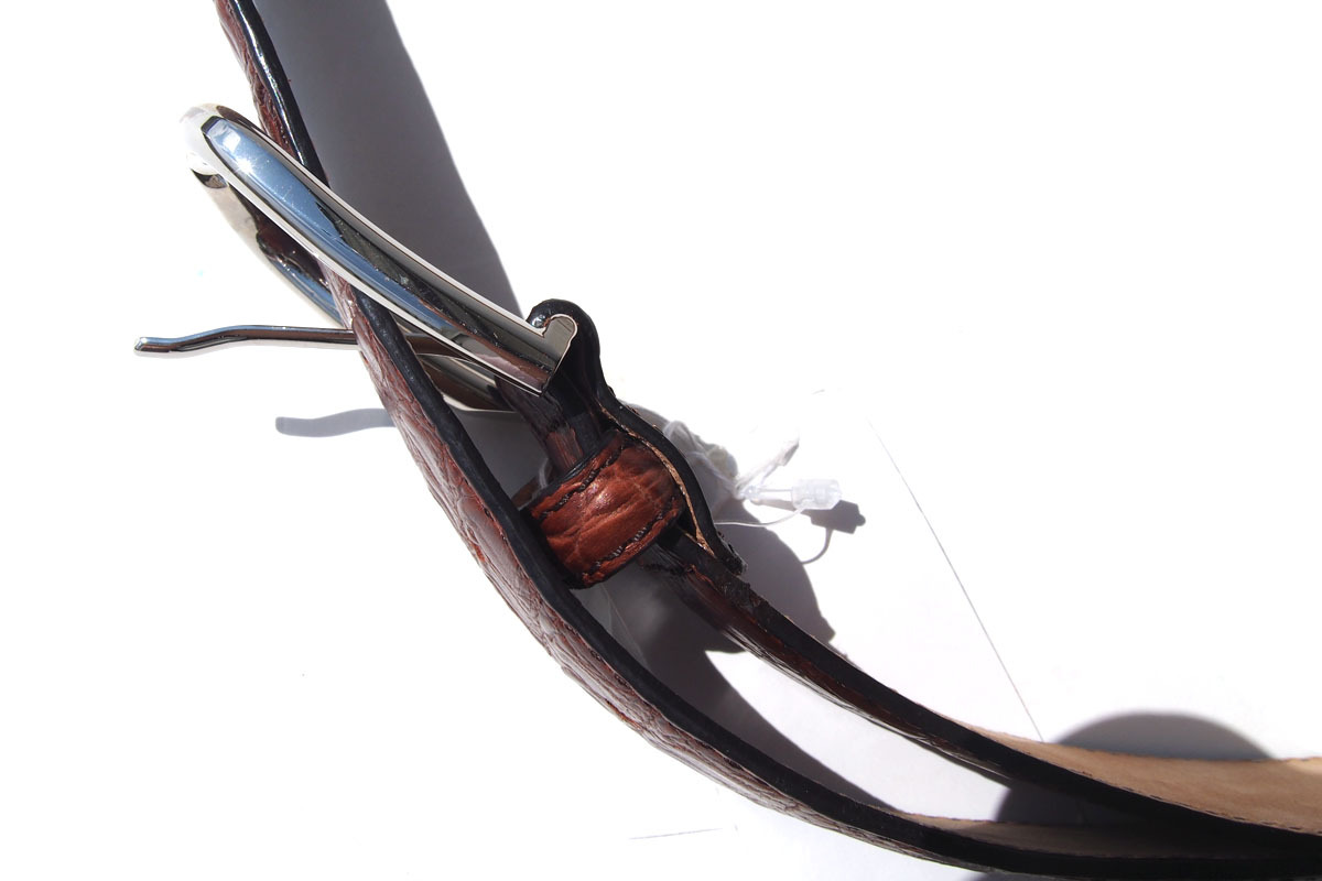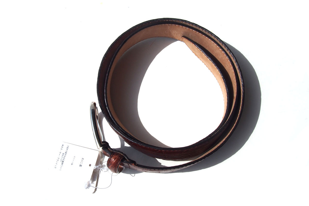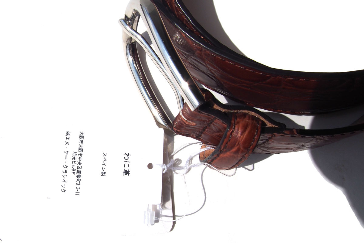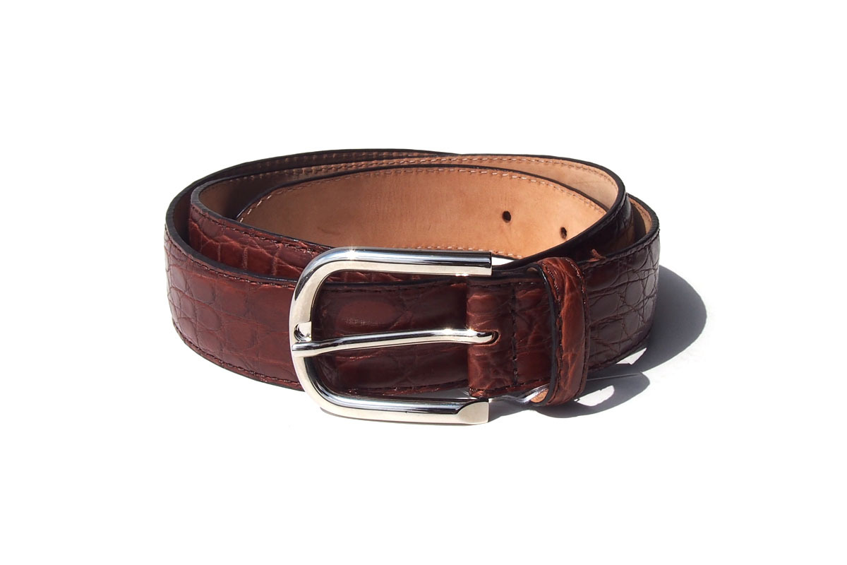 自然な艶と模様が美しく引き立つ、選び抜かれたわに革を使い、シンプルな美しさに仕上げられたベルトです。