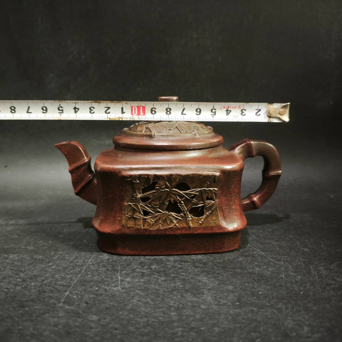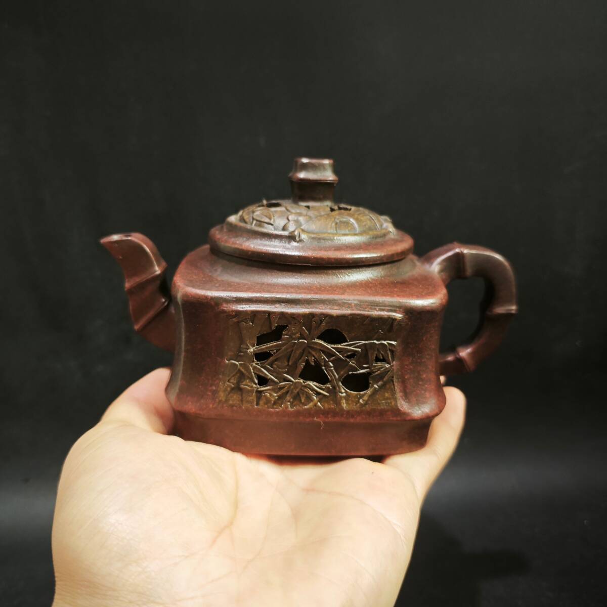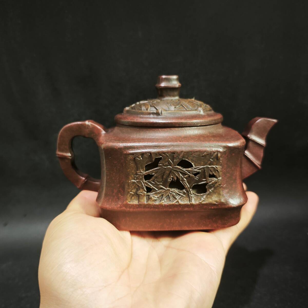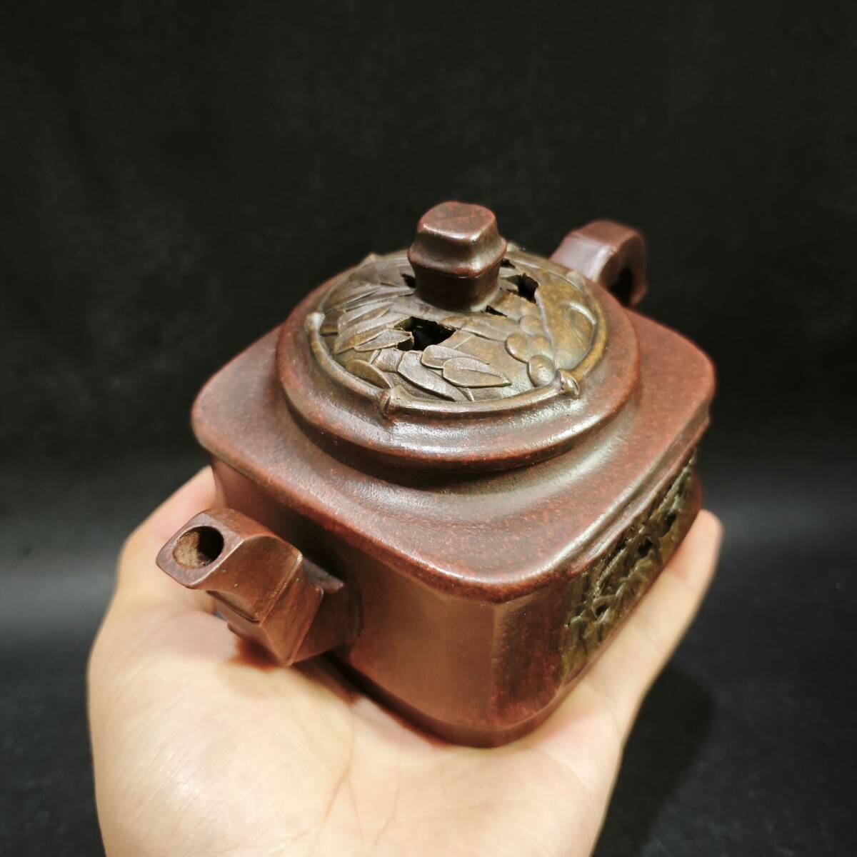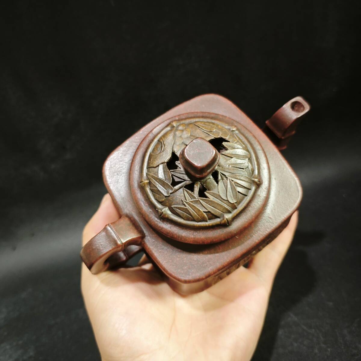 【超珍館蔵】紫砂壺 四方鏤空壺 顧景舟款 古紅料 茶具 茶道品 置物 賞物 古賞物 古董品 古美術品 時代物 旧家蔵出 稀少珍蔵品