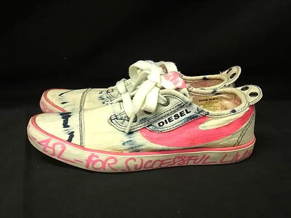 DIESEL ディーゼル キャンバス スニーカー 表記サイズ 33 (約21.0cm) 靴 シューズ レディース アイボリー系×ピンク系 DK0300