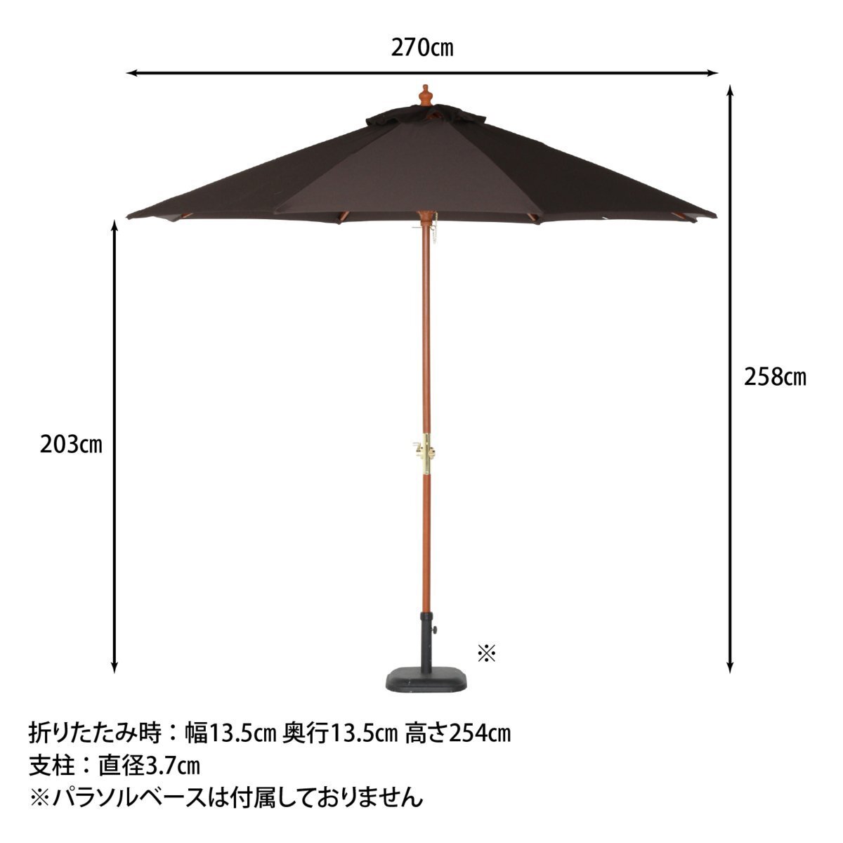 その他 | ■ジョイント式なので、収納、持ち運びに便利です。 ■パラソルの開閉が楽なクランク付きです。 ■UV400カット ■ベースは別売りになります。 |