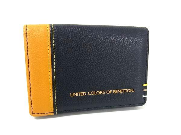 ■極美品■ BENETTON ベネトン レザー 二つ折り カードケース カード入れ 名刺入れ メンズ ネイビー系 DI0070