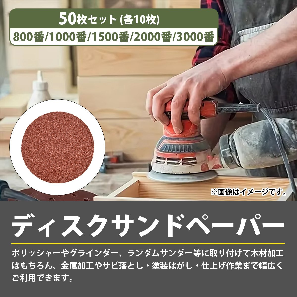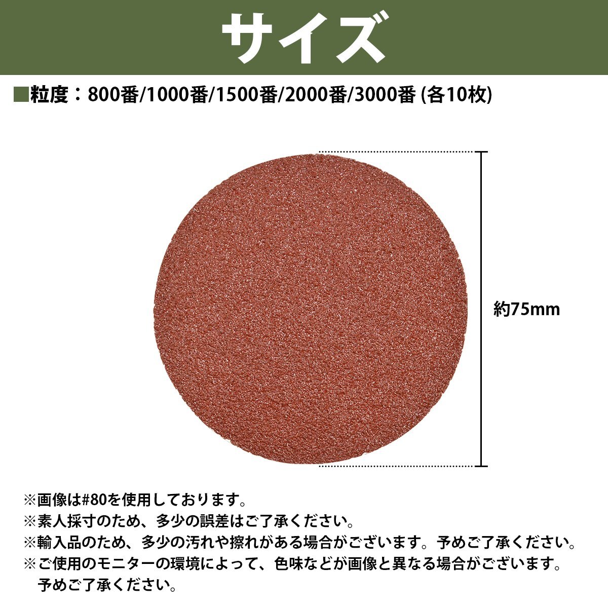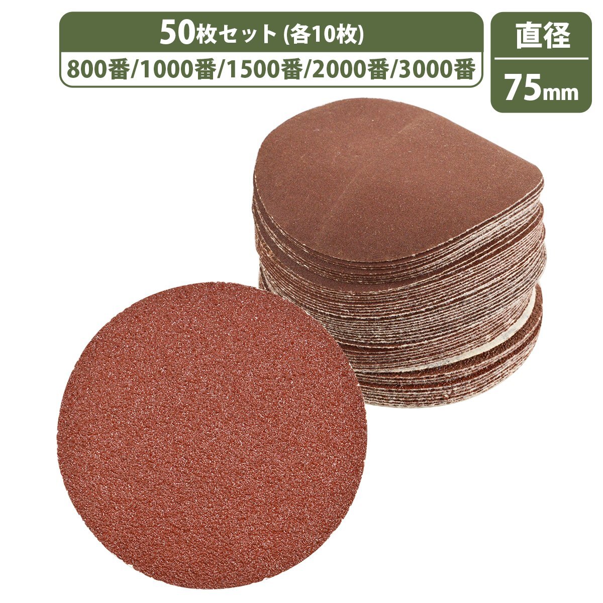 【新品即納】75mm 細目 5種 50枚セット 800/1000/1500/2000/3000 ディスクペーパー マジック式 サンドペーパー エア サンダー 電動ドリル