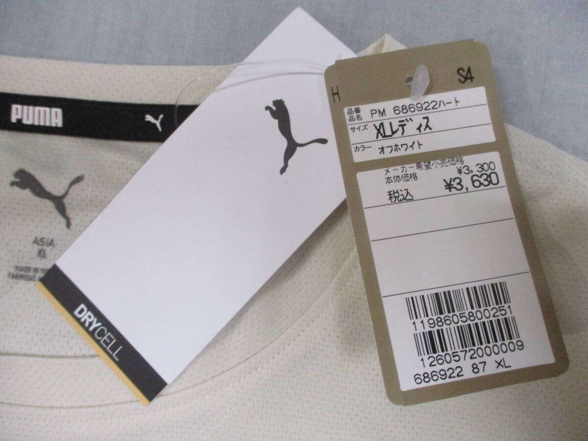 プーマ PuMA WOMENS Tシャツ DRY CELL ハート オフホワイト XLサイズ バスト91~96cm 身長171cm~177cm 【商品タグ付】