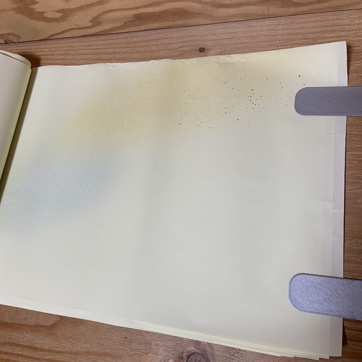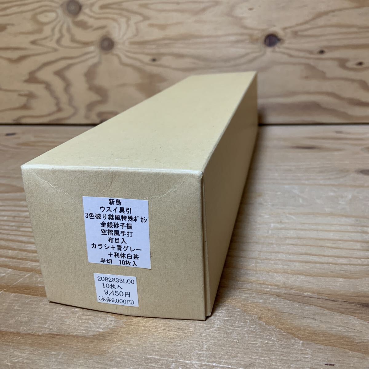 Y11K4-251002 レア[新鳥 ウスイ具引 3色破り継風特殊ボカシ 金銀砂子振 空摺風手打 布目入 カラシ+青グレー+利休白茶]