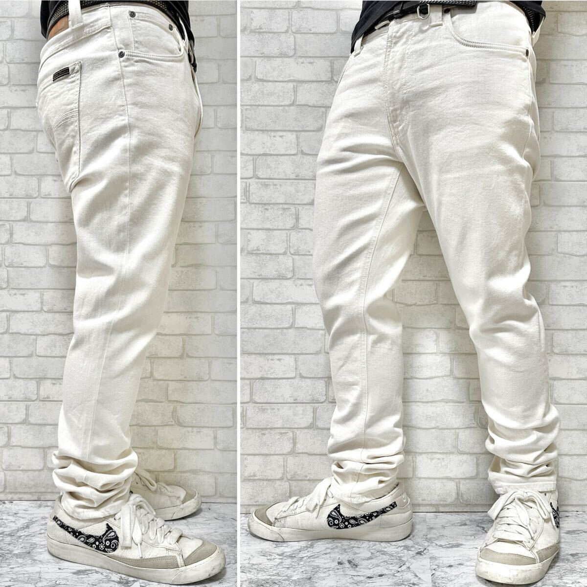 ☆オーガニックコットンを使用した生成り生地が特徴の一本。更にストレッチ素材を加えた伸縮性のある快適な穿き心地◎また、バックには牛革レザーパッチやピスタグを配置。スッキリとしたスリムフィットのボトムスです。