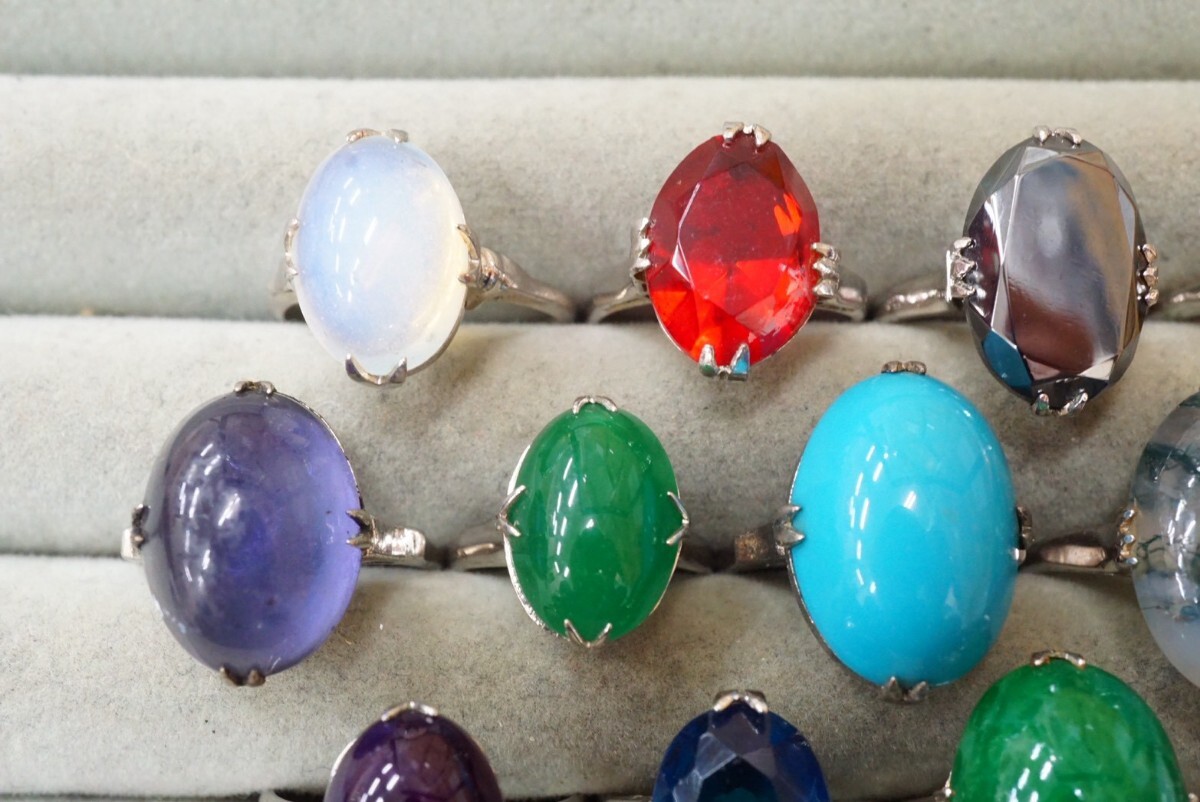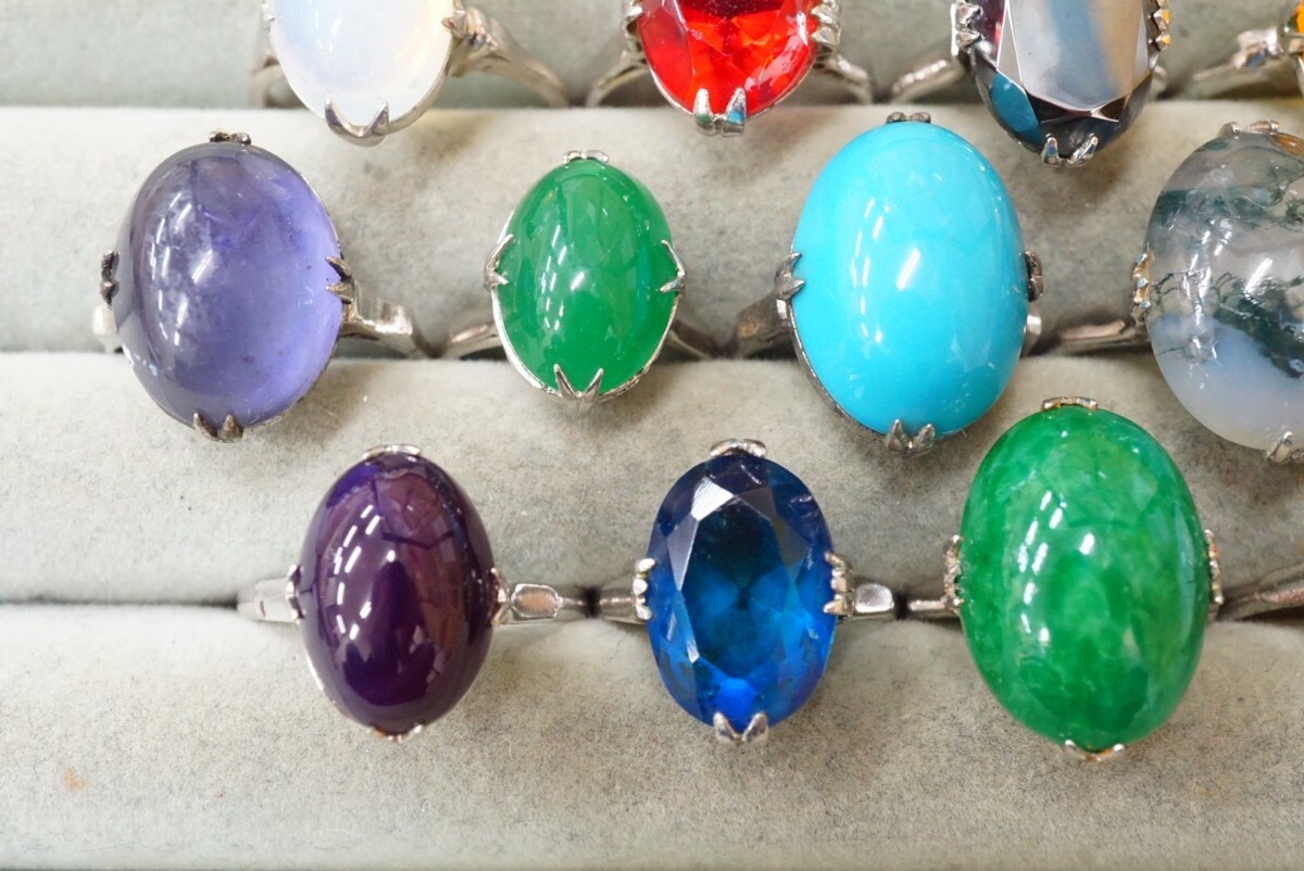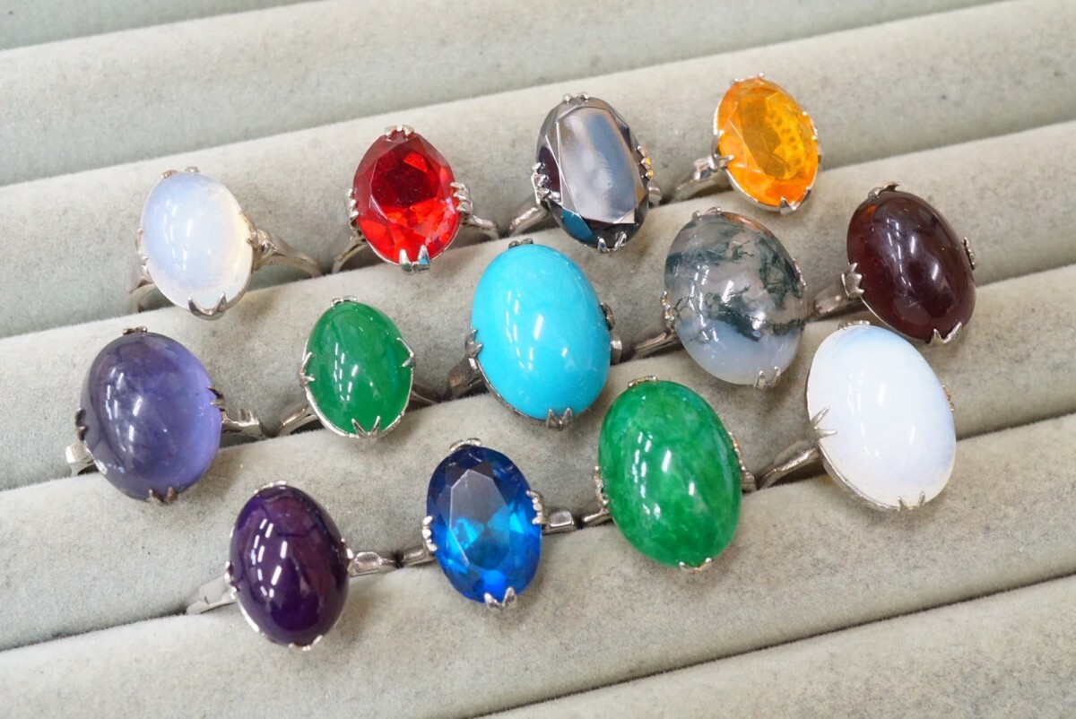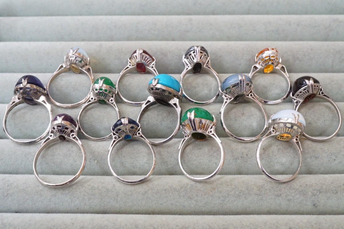 C229 全て千本透かし 天然石など ヴィンテージ リング 指輪 13点セット アクセサリー カラーストーン 大量 まとめて おまとめ SILVER含む