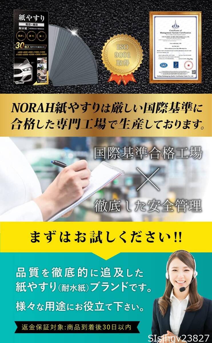 【NORAH紙やすり特徴】耐水・使いやすい目サイズ・大きさ等こだわりぬいて開発しました。素材においてもダイヤモンドに次ぐ硬さの炭化ケイ素を使用しているので耐久性・耐食性においてもご満足いただけます。