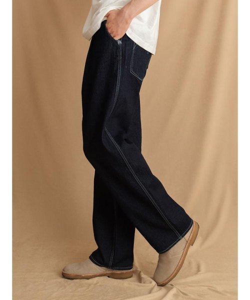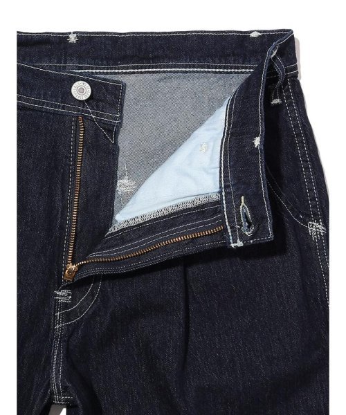 敢えて歪なバックポケットのアーキュエットステッチや、縫い目をコントラストカラーで仕上げた特徴的な