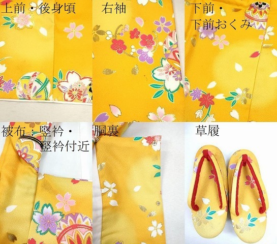 着物【化繊】の状態は接写画像のように上前・後身頃・下前・下前おくみ・胴裏・右袖・紐に薄い汚れがございます。 被布【化繊】の状態は接写画像のように竪衿・竪衿付近・胴裏に薄い汚れがございますが その他特に目立ったシミ汚れなどもなく大変良い状態です。 長襦袢【化繊・単衣】の状態は特に目立ったシミ汚れなどもなく大変良い状態です。 お安く出品致しますので、是非この機会にいかがでしょうか? ※箱に傷み破れがございますが商品には問題ございません。 ※巾着の底・草履に薄い汚れがございます。 |