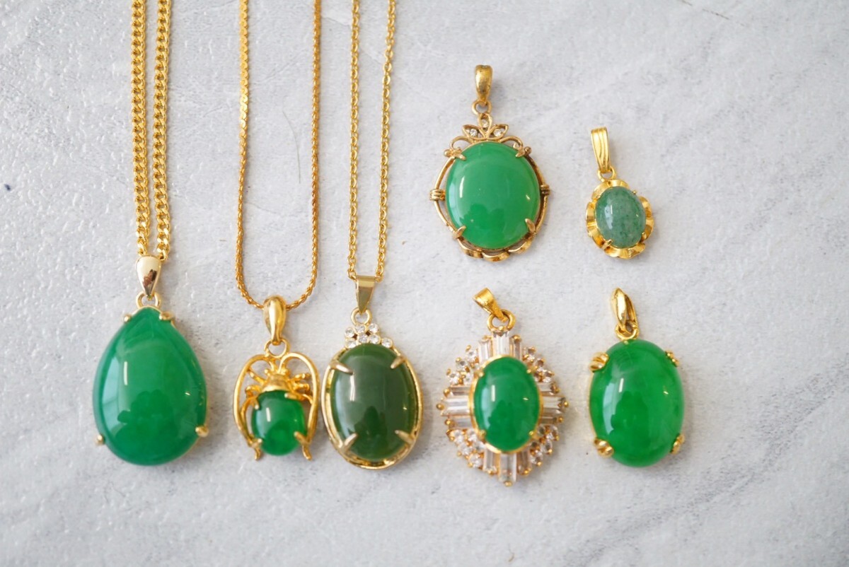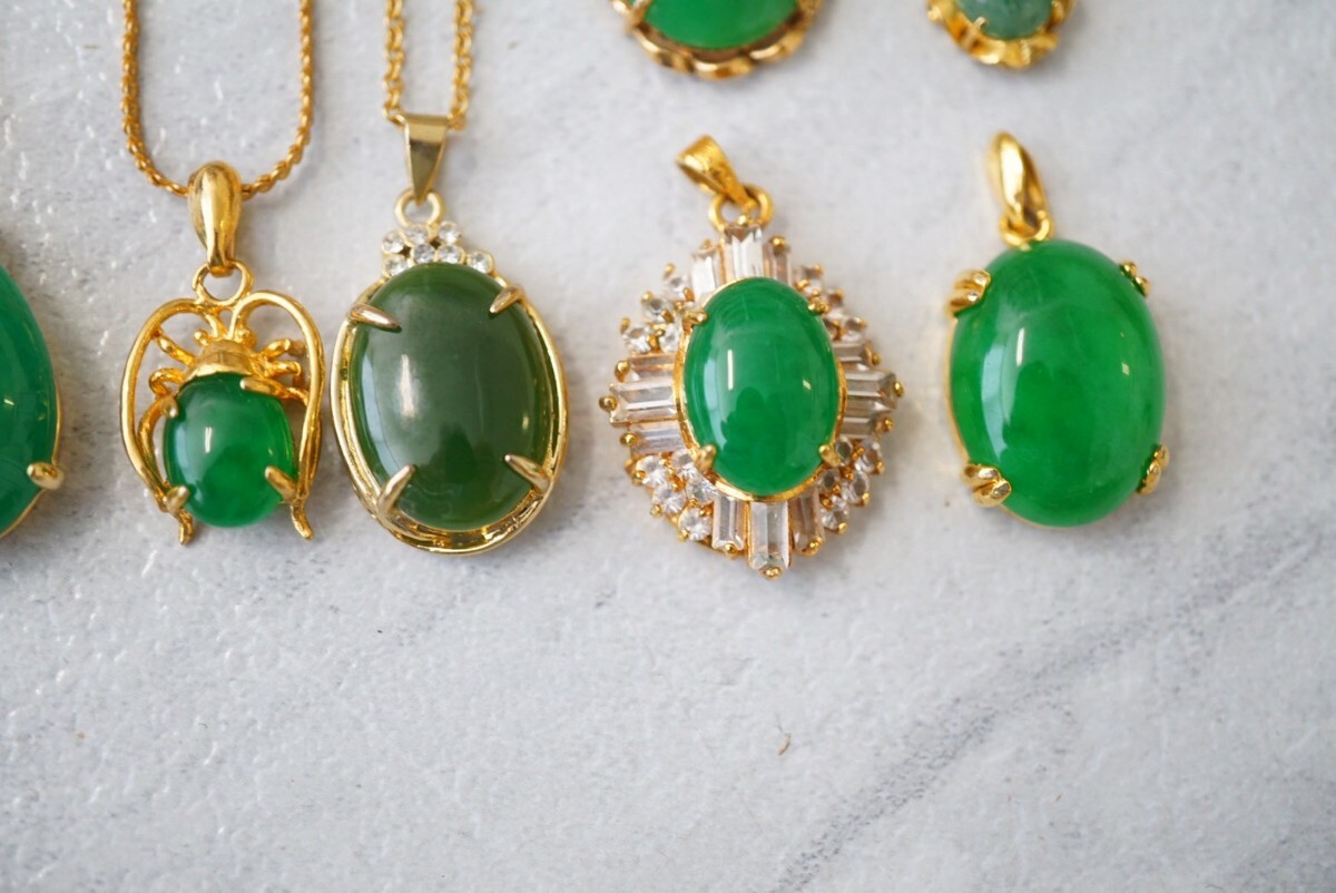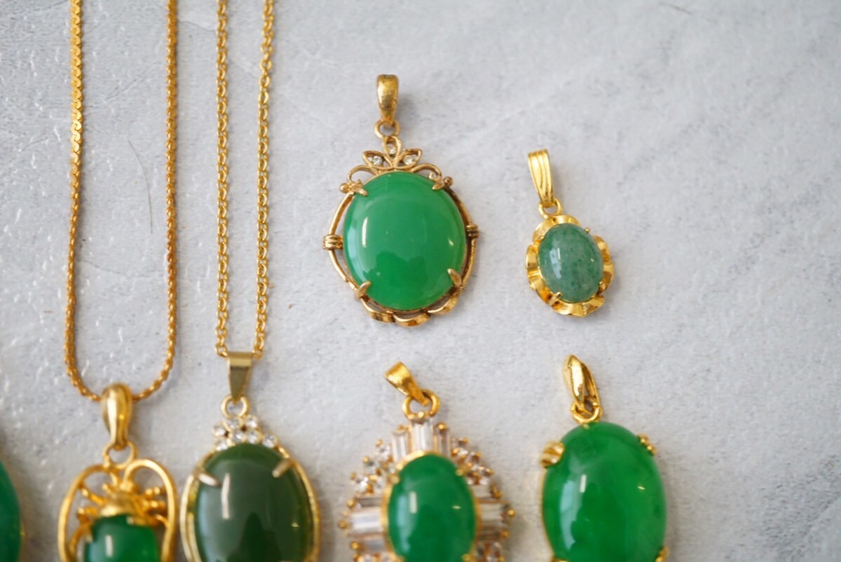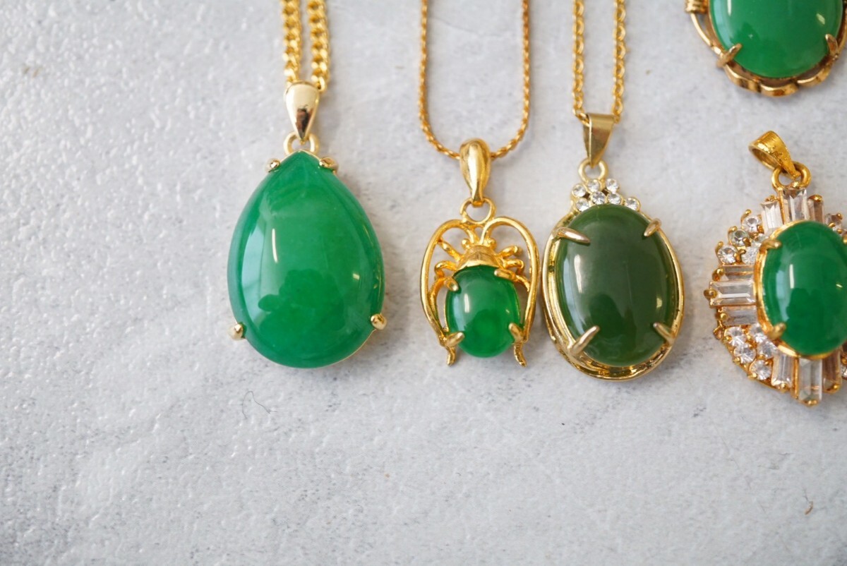 B386 緑石 天然石系 ゴールドカラー ネックレス ペンダント ヴィンテージ アクセサリー カラーストーン 大量 セット まとめて おまとめ
