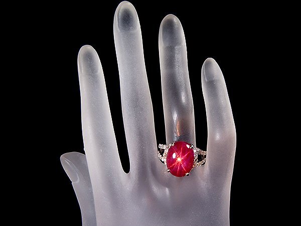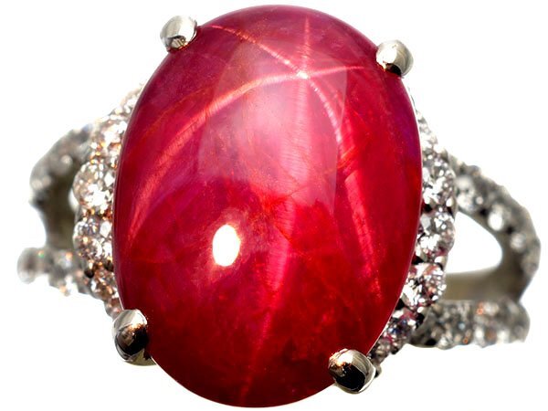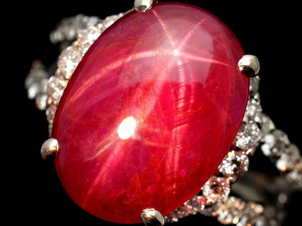 極上品!美しい色調と極上のスター効果放つ超希少なビルマ産(ミャンマー産)の超大粒極上非加熱スタールビー12.81ct&極上ダイヤモンド総計1.00ctを素敵に宝飾した、超高級Pt900リングで御座います!