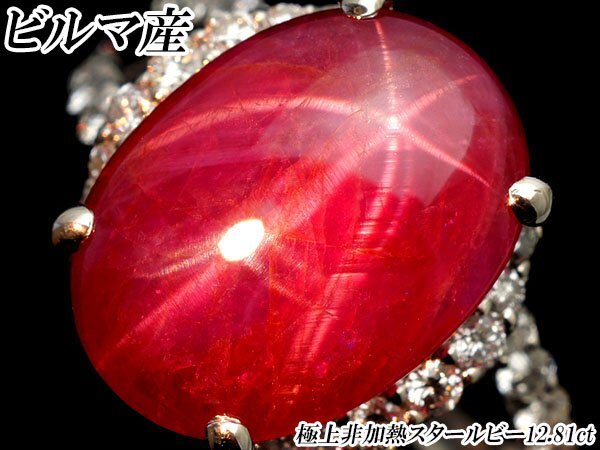 【ジュエリー極】鑑付 ビルマ産 超大粒極上非加熱スタールビー12.81ct&極上ダイヤ0.75ct 超高級Pt900リング kitk752ium【送料無料】