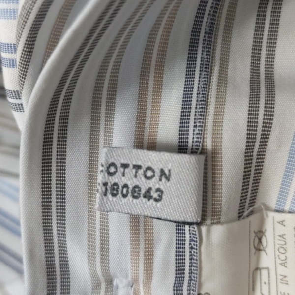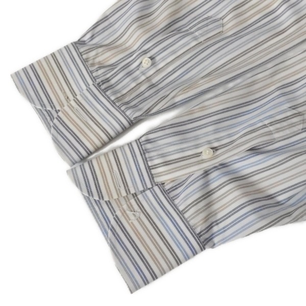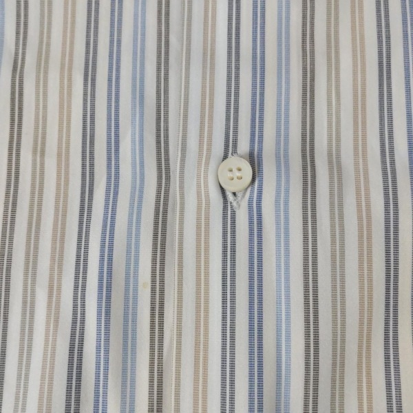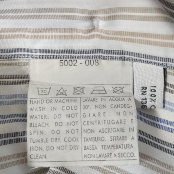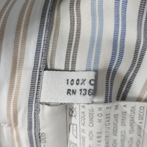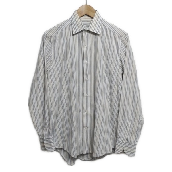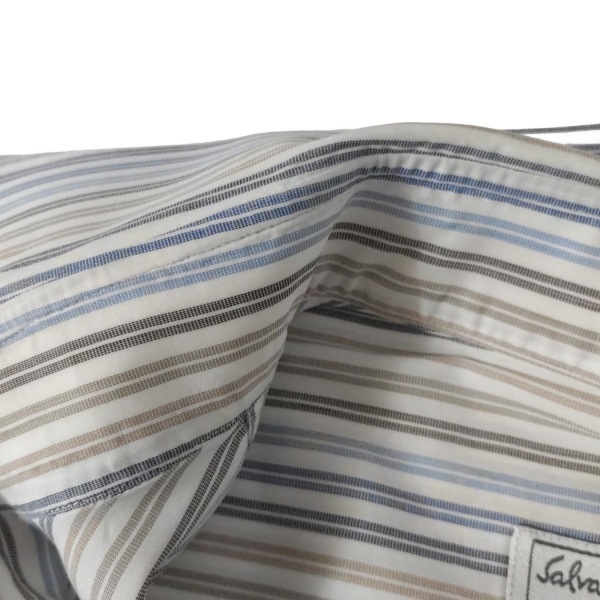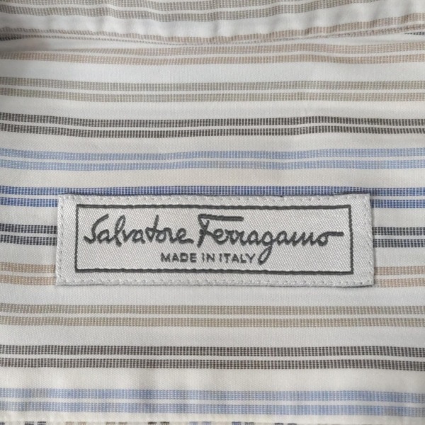 サルバトーレフェラガモ FERRAGAMO/SalvatoreFerragamo 長袖シャツ サイズ40 M - 白×ブルー×カーキ メンズ ストライプ トップス