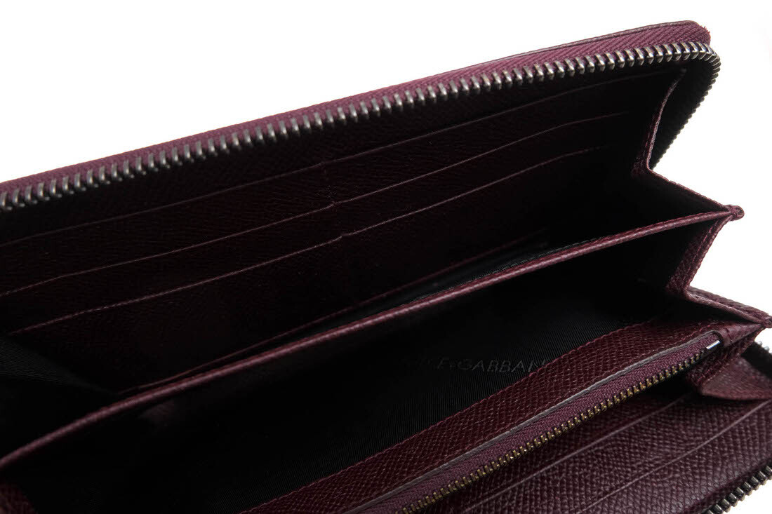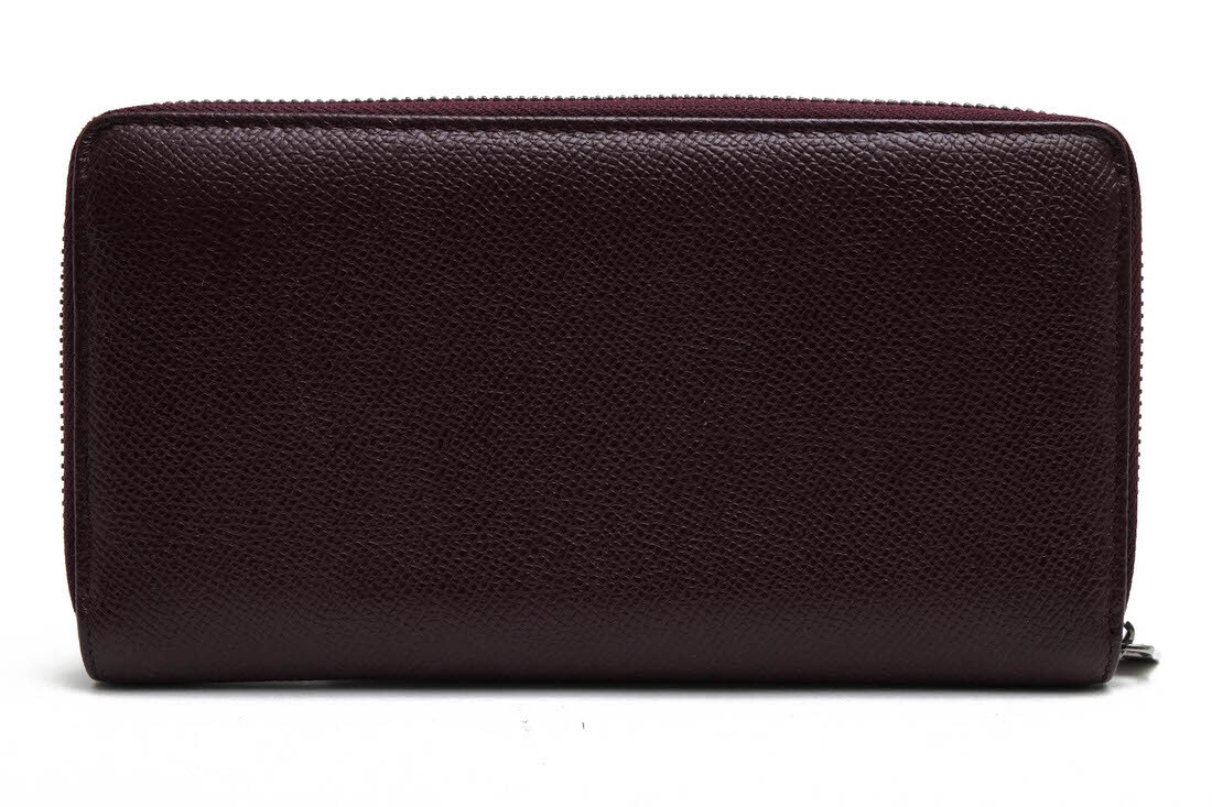 グレイン型押し牛革を前面に使用し、DOLCE&GABBANAの刻印プレートがアクセントになったロングウォレット。エグゼクティブな大人の印象です。三辺をファスナーで囲んだラウンドファスナー型なので、お札やカードポケット、小銭入れの収納スペースが充実しており、ファスナーを開いたときに視認性に優れているのも特徴です。またファスナーで守られているので、大切なお金やカード類を落としてしまうのを防止し、安全性の高いデザインです。 |