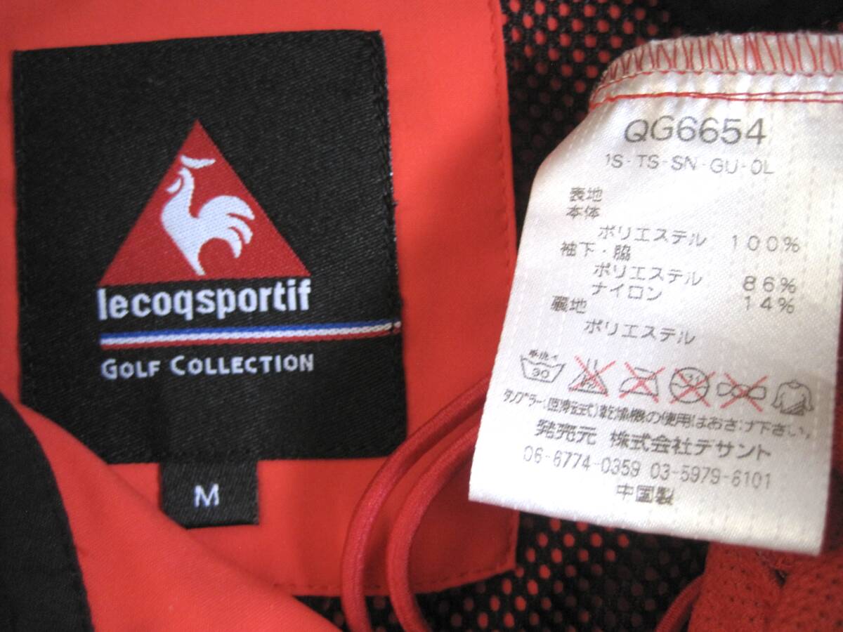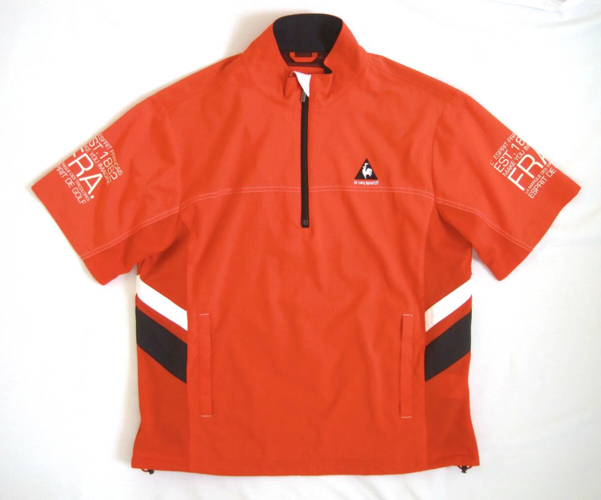 ルコック ゴルフ 半袖 ポリエステル素材のハーフジップブルゾン。Mサイズ。
