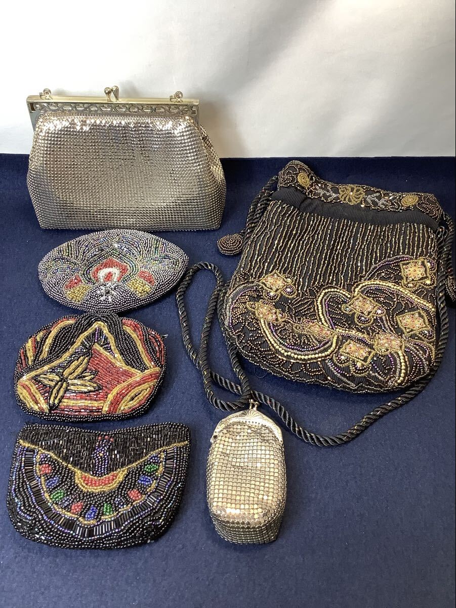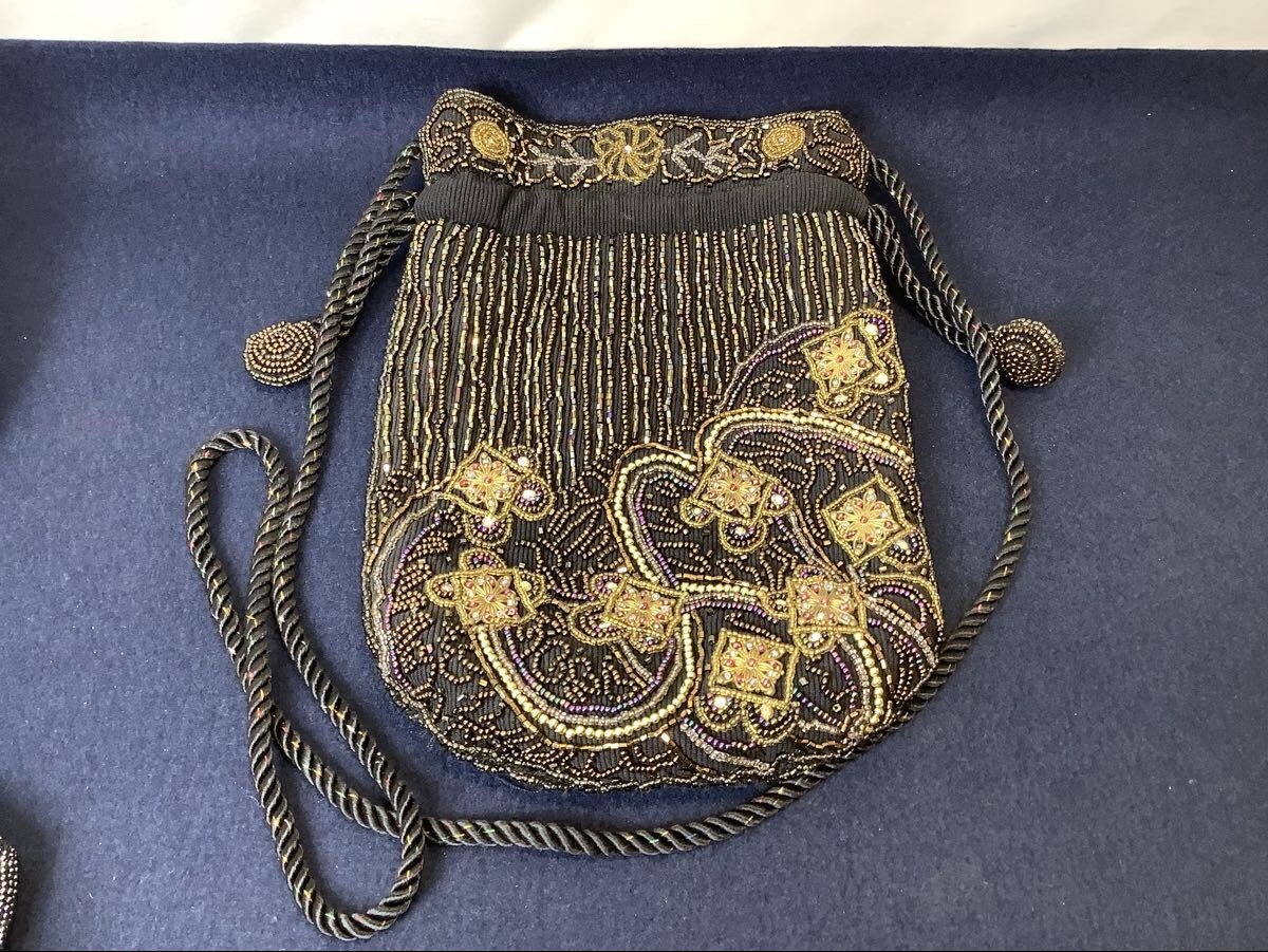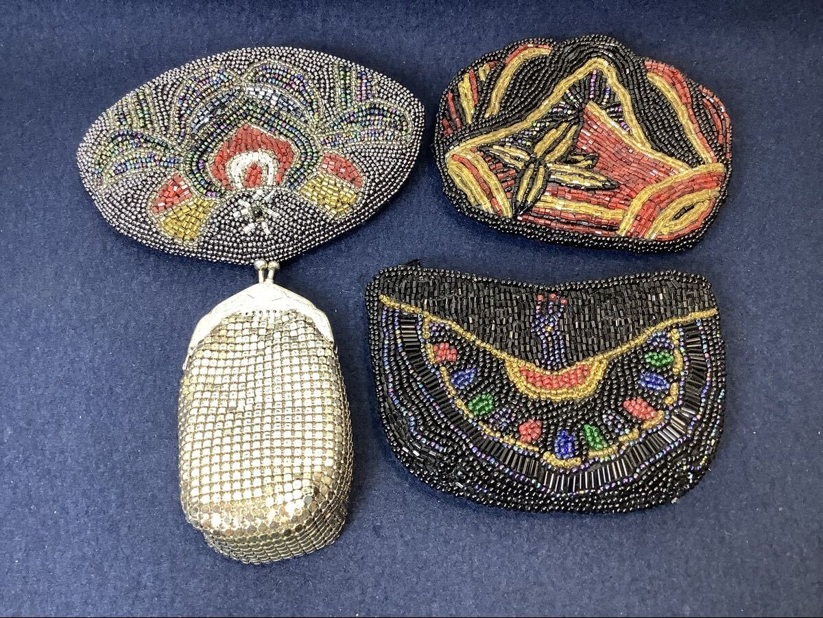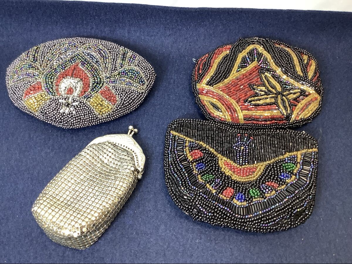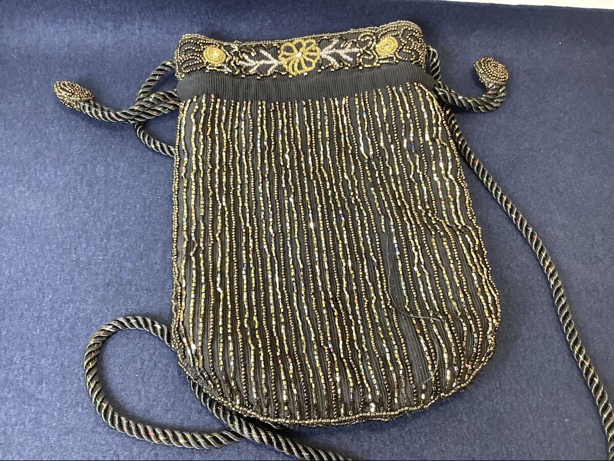 商品名:ビーズバッグ パーティー ハンドバッグ がま口 レトロ 小銭入れ 小物入れ ポーチ ヴィンテージ 洋装 和装小物 現状品 HI100205