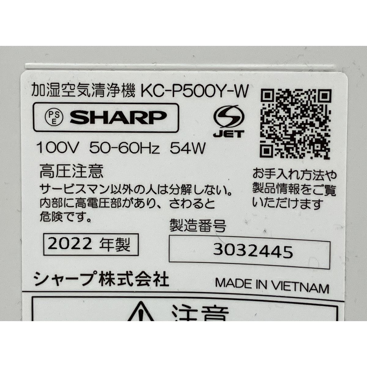 | SHARP KC-P500Y-W 加湿空気清浄機 可動品 プラズマクラスター 2022年製 シャープ 中古 O10299679 |