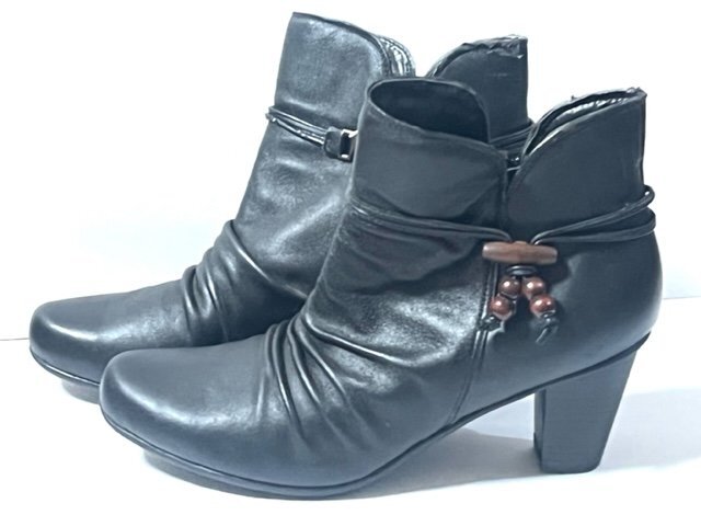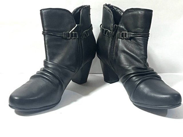 ★未使用★ TS2851 ショートブーツ 23.5cm EEE 3E サイドファスナー付き 靴 ブーツ 黒 ヒール レディース |