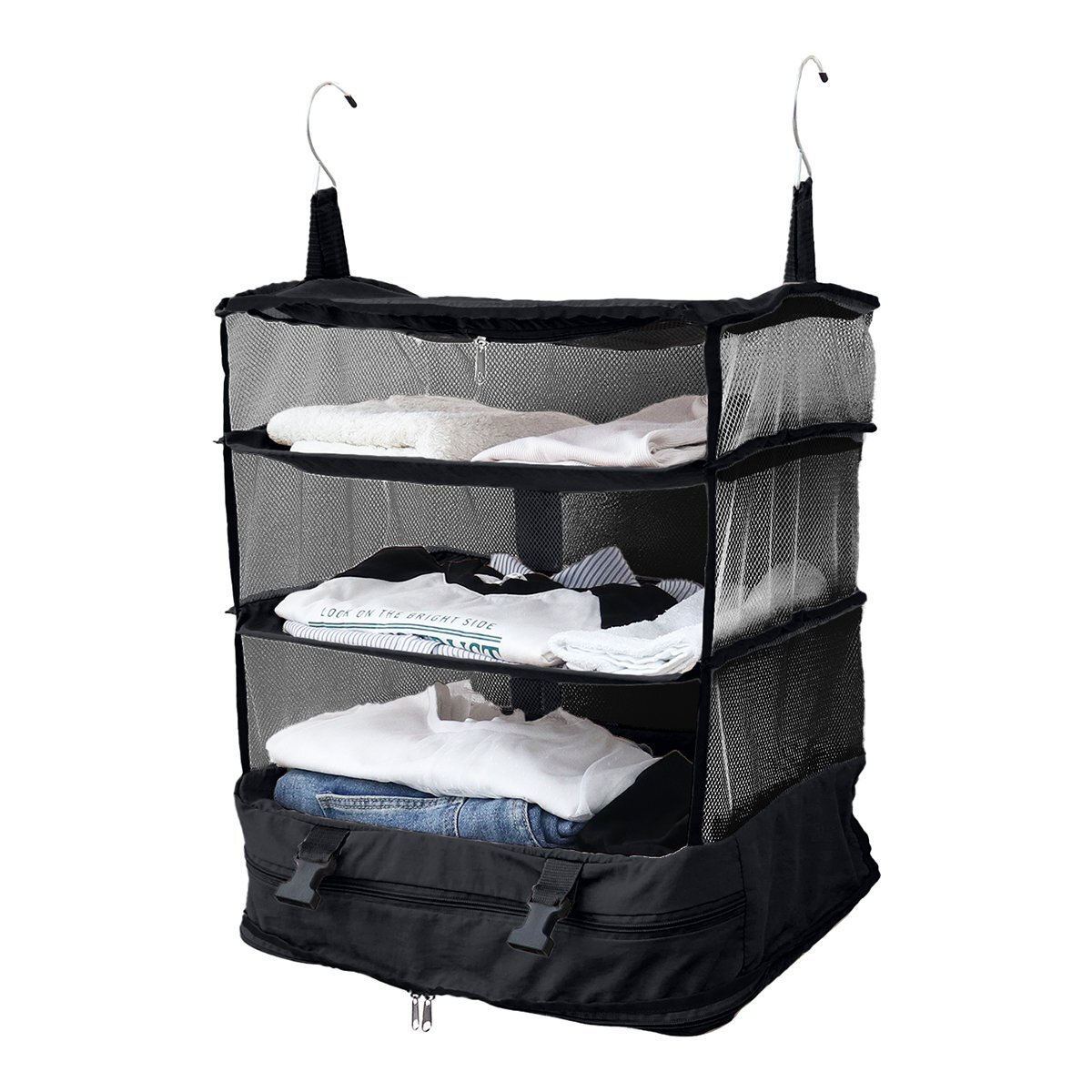 たっぷり収納でき、すっきり圧縮できる吊り下げトラベルポーチです。