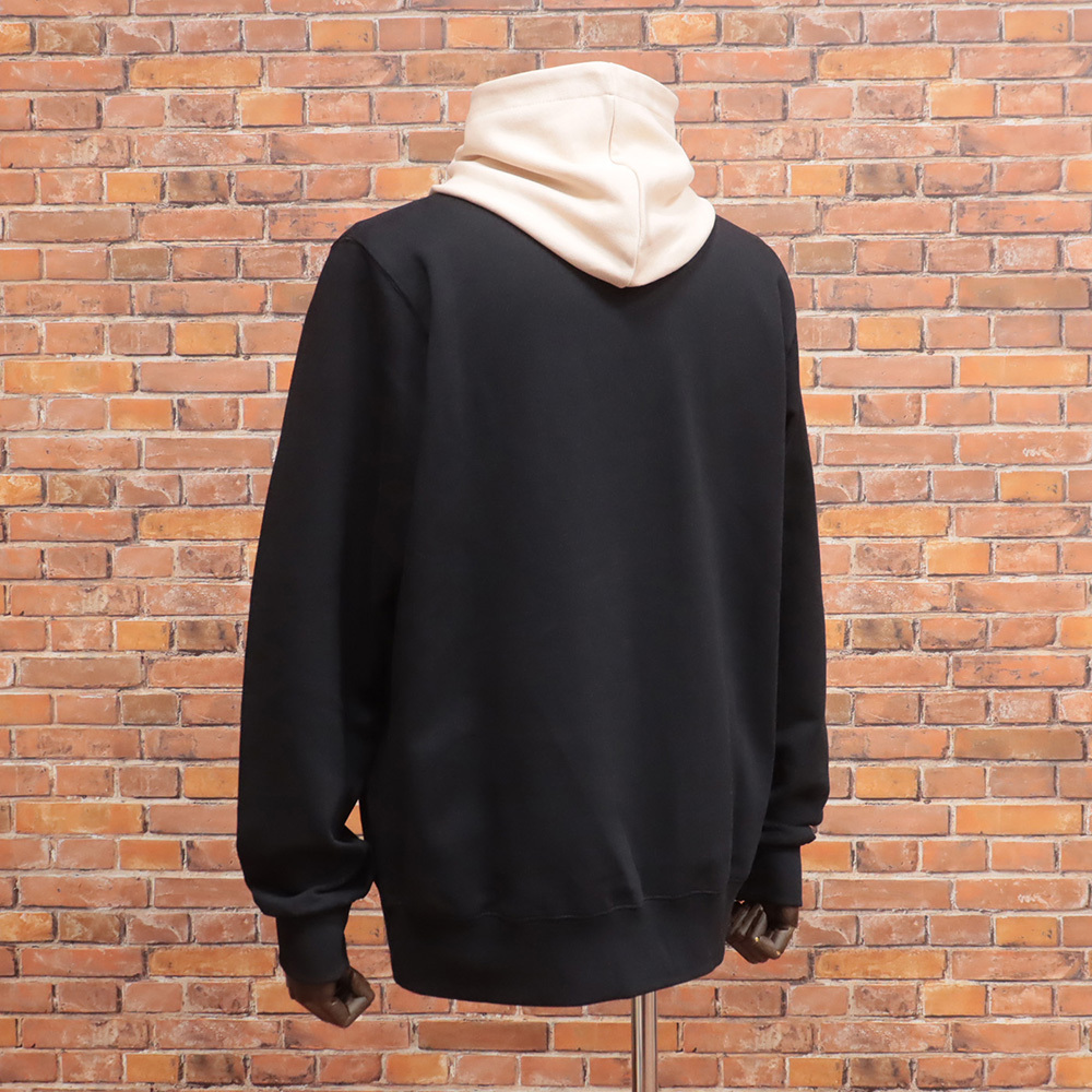 ボディとフードに配色を効かせたデザインが目を引くフーディー。コントラストのあるカラーリングがスタイリングに奥行きを加え、胸元のロゴパッチがさりげないアクセントとなり、ストリートムードをさらに高めてくれます。