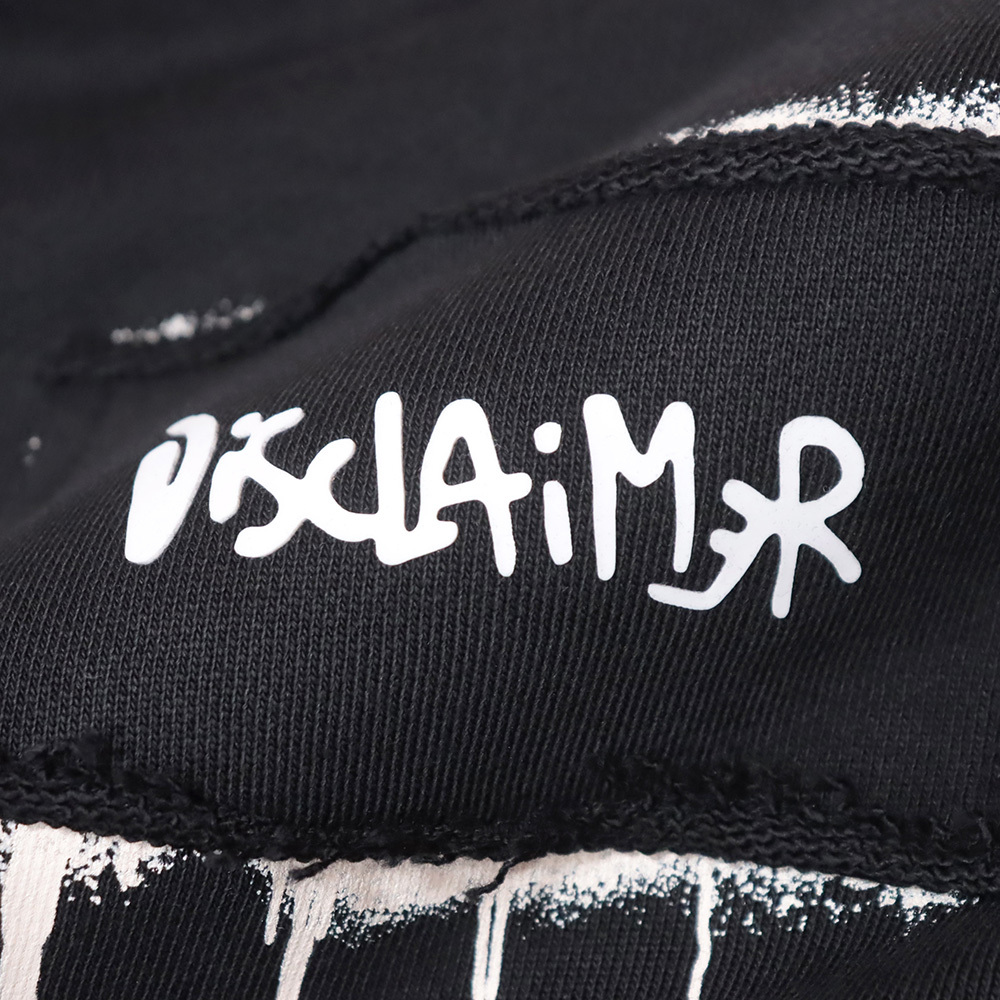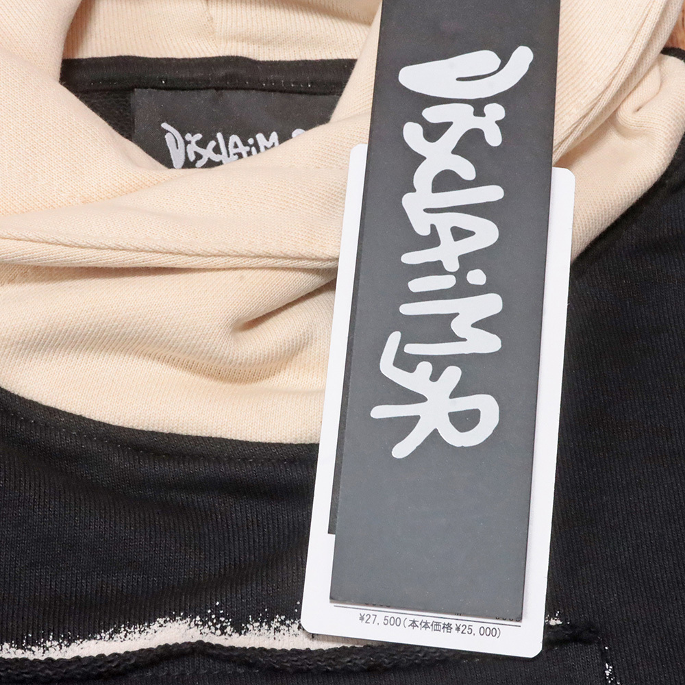 DISCLAIMER/Mサイズ/パーカー フーディー 配色切替 ロゴパッチ 裏パイル スウェット ストリート 新品/黒/ブラック/mc258/