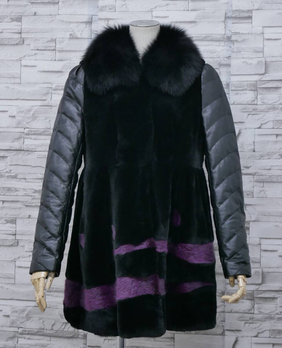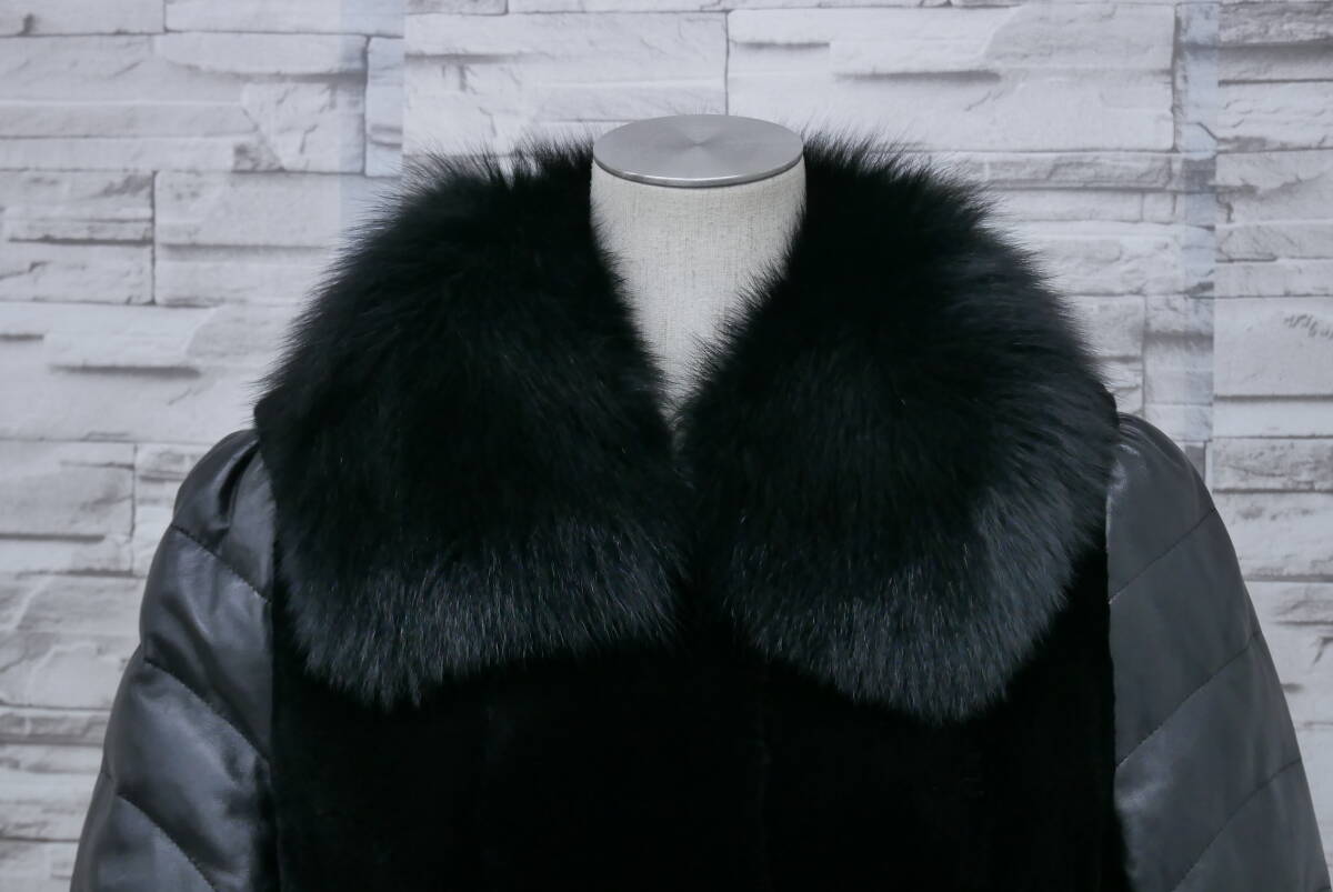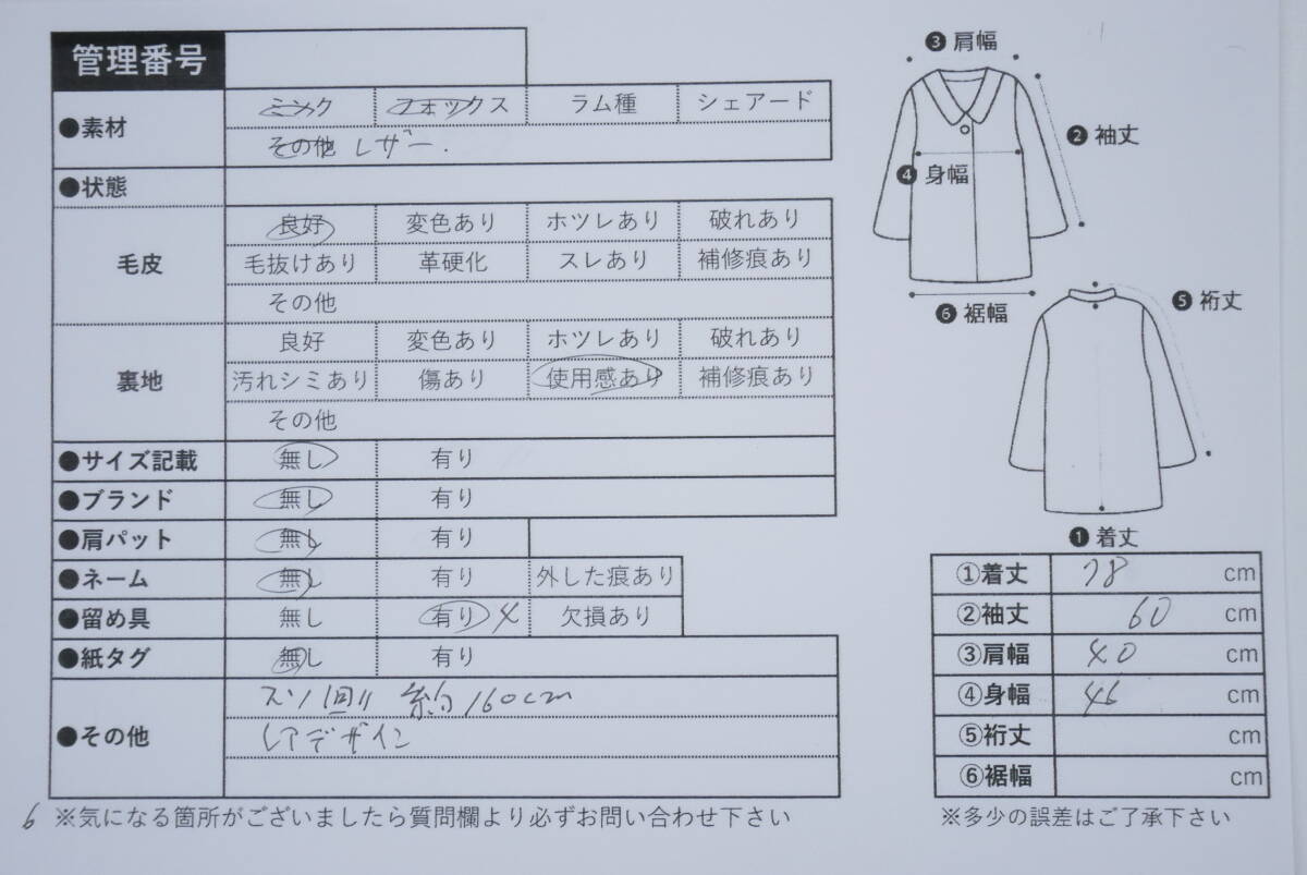 ☆ミンク・フォックス&レザー☆ハーフコート☆着丈78cm☆裾回り約160cm☆レアデザイン☆