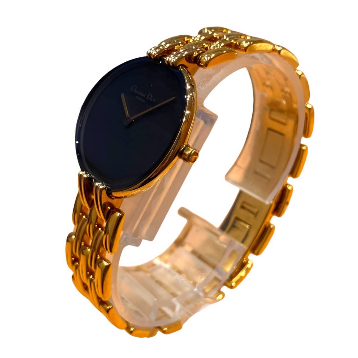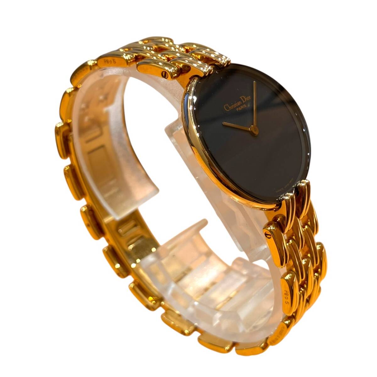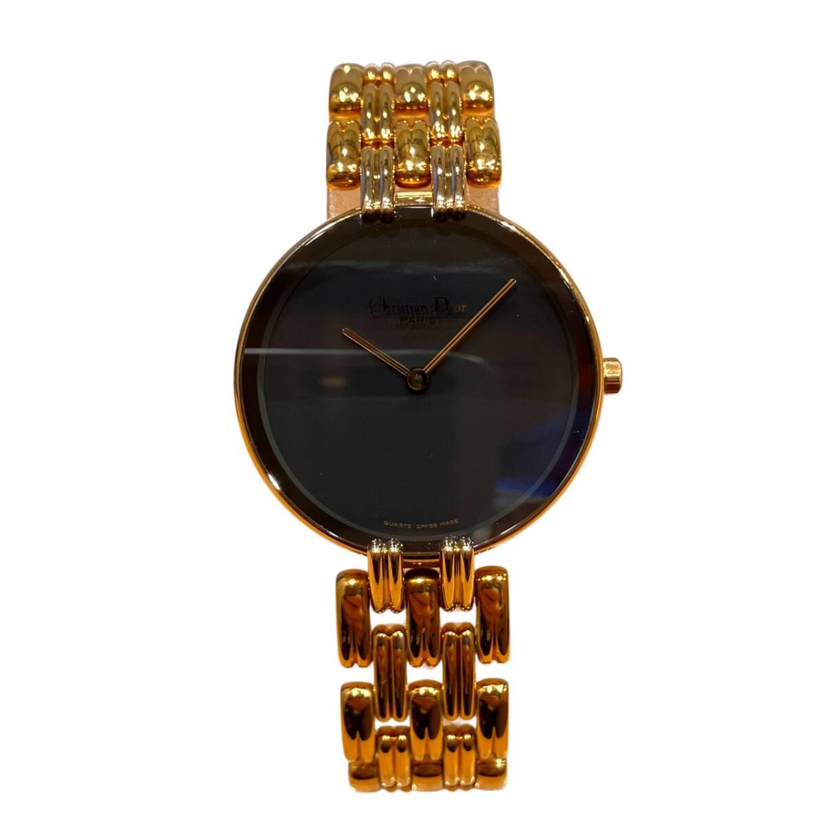 Dior ディオール バギラ D46-154-4 クオーツ レディース 黒文字盤 GP ゴールドカラー 腕時計 稼働品 |