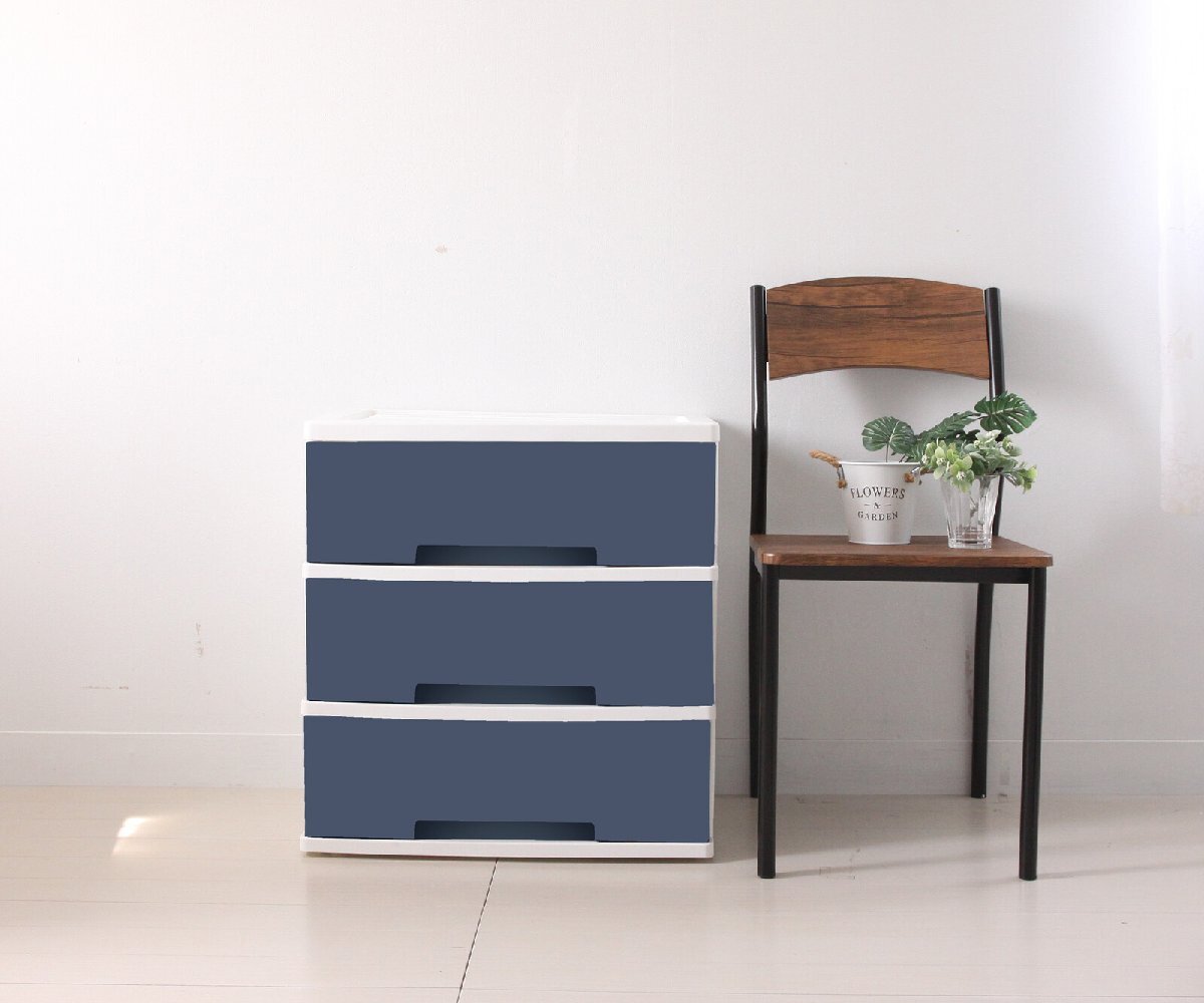 即決可@新品NewLife ワイド収納ケース3段/ネイビー | ||||||||||||
