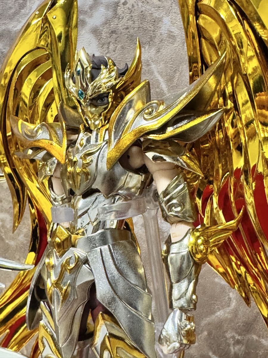 海外製の神聖衣サジタリアス風の聖衣ボディに、これまた海外製品Toypointのサジタリアスの頭部を合わせてカスタムしたもの。画像の現状のみでこちらは変えの手や弓矢はありませんのでご注意ください。