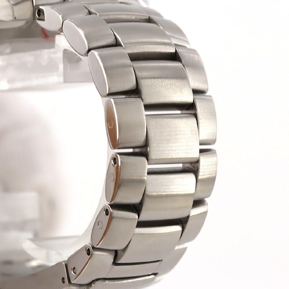 2006年に登場した「シーマスター プラネットオーシャン」は、オメガのダイバーズウォッチのフラッグシップとして人気を博すコレクションです。当モデルは、マットな質感のブラックダイヤルに、視認性の高いアラビア数字とドットインデックスを組み合わせ、オレンジの差し色が映える一本。逆回転防止ベゼルは、プロフェッショナルな雰囲気を高めます。高精度なCal.2500を搭載し、機能性にも優れる、オメガを代表するスポーツモデルです。ビジネスからカジュアルまで幅広く活躍する実用性も魅力です。