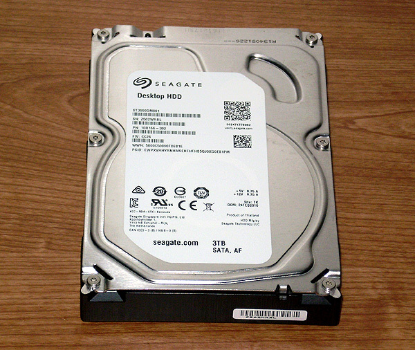 (SATA接続)3TB Seagate Desktop HDD ST3000DM001-1ER166、F/W:CC26、です。(^o^)