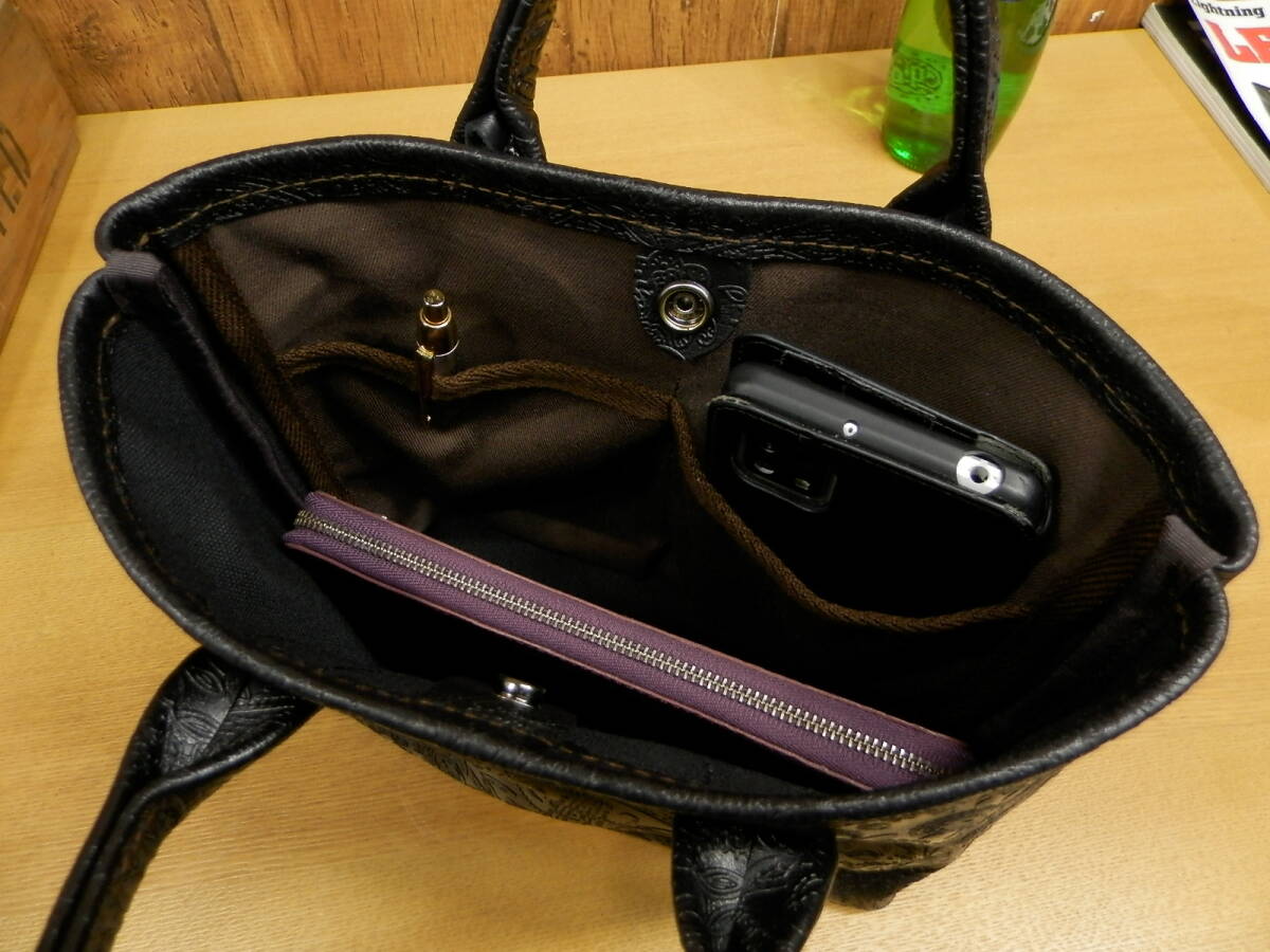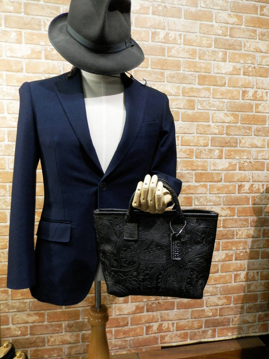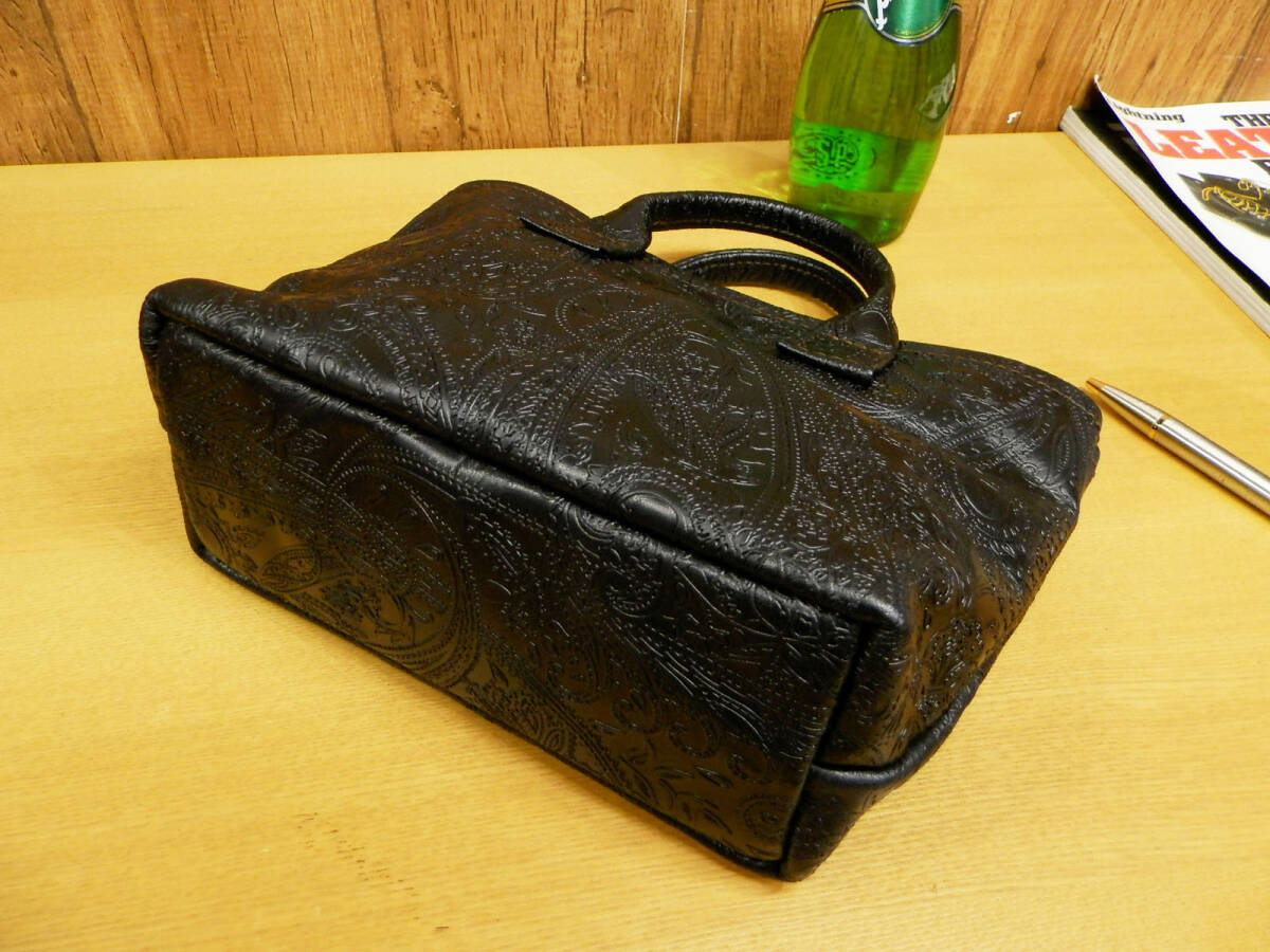 ☆XSサイズ☆ちょい悪ブラックペイズリーのミニトートバッグ!日本製 姫路レザー黒ハンドメイド