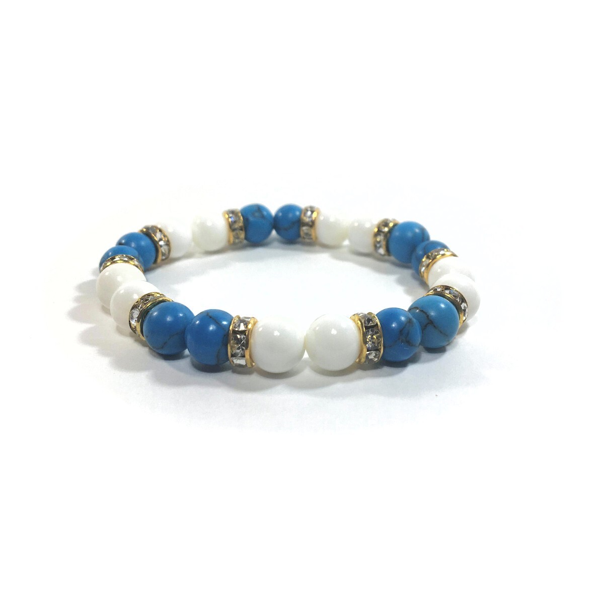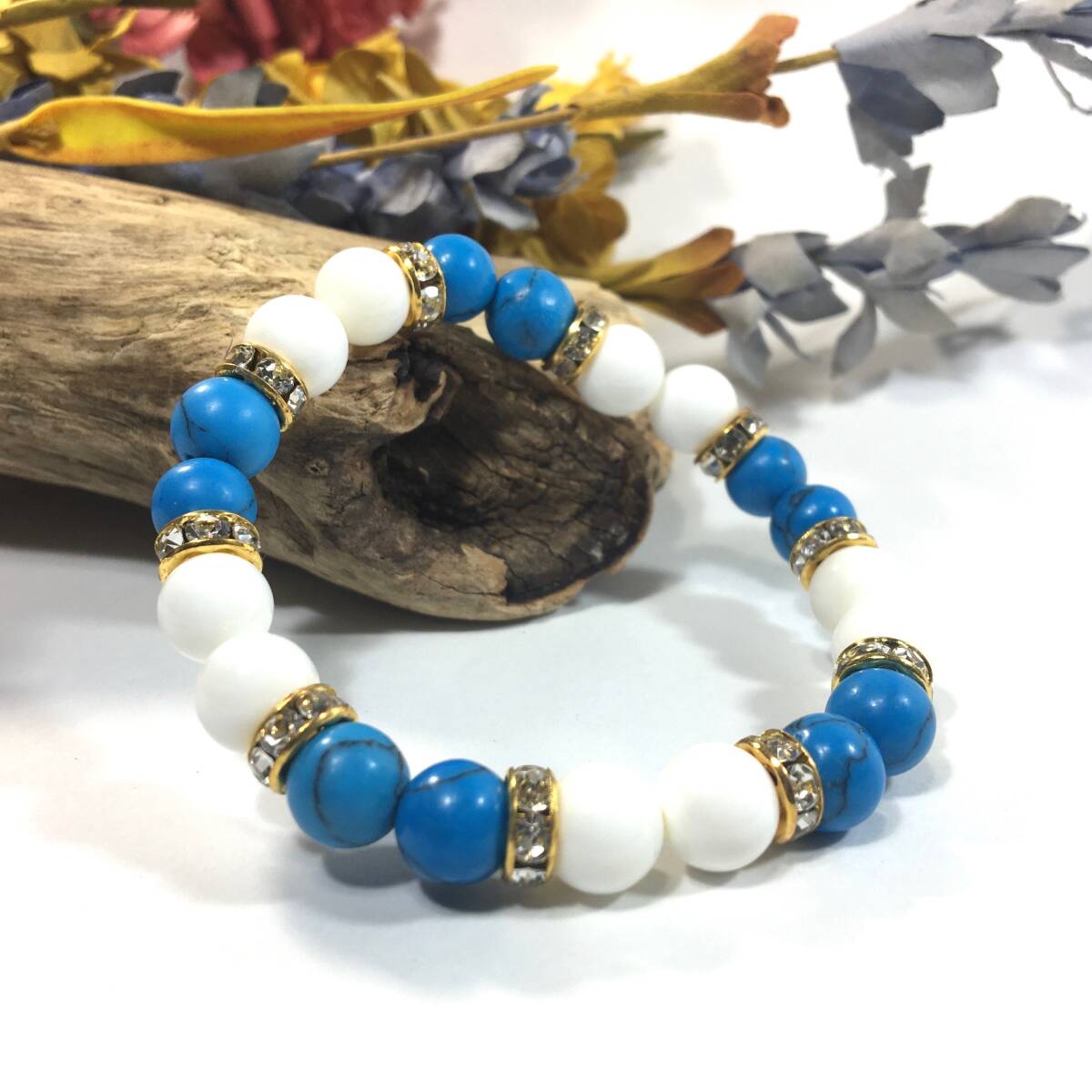 ターコイズ&ホワイトオニキス パワーストーン ブレスレット ゴールド 8mm /開運 浄化 魔除け お守り 成功 繁栄 効果 レディース 通販