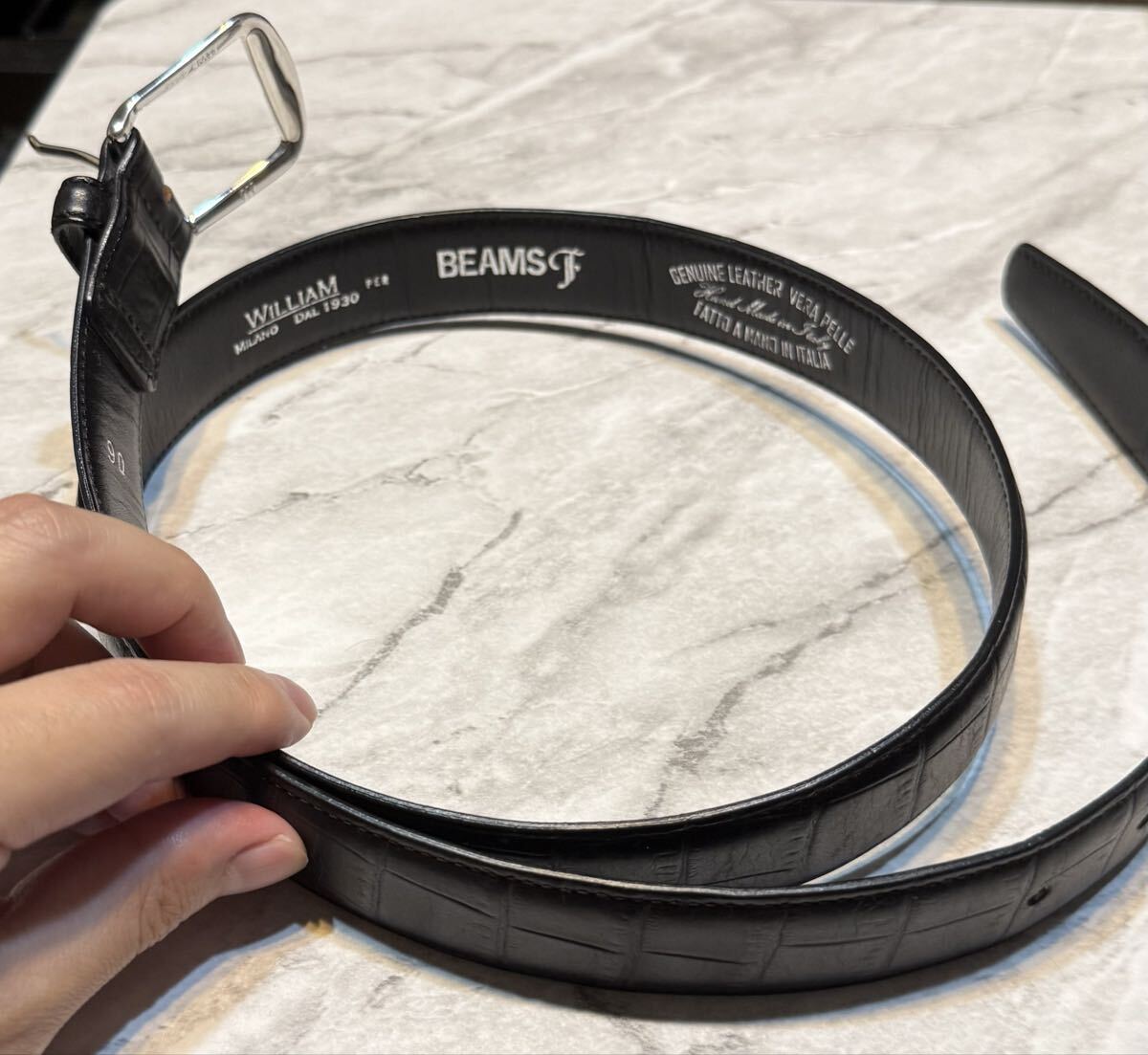 ・腰周りのアクセントにマットな質感が特徴的な<WILLIAM(ウィリアム)>のクロコスタンプレザーベルト。