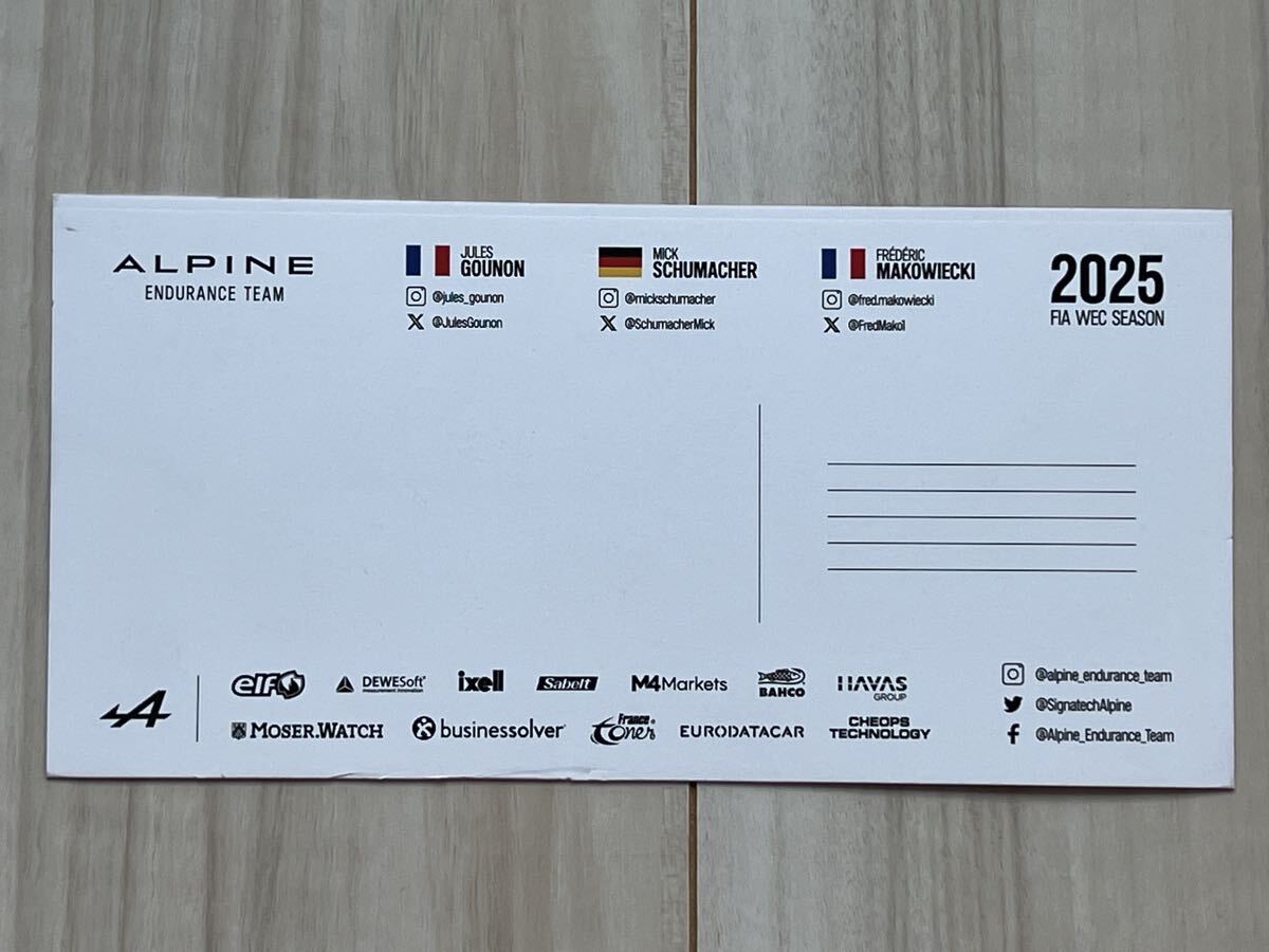 【おまけ付】直筆サイン入り 2025WEC富士 アルピーヌ36号車ドライバーズカード シューマッハ マコヴィッキ