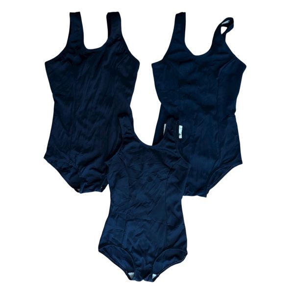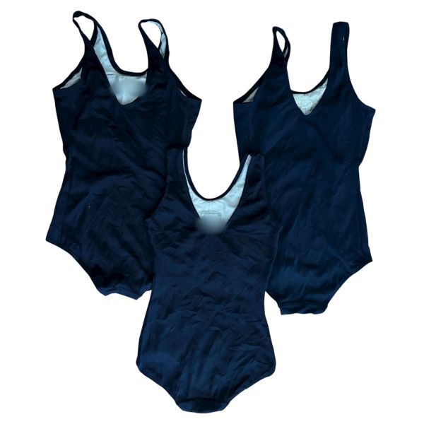 42【整理品リサイクル3枚セット】女子競泳水着150&160サイズ★イオンなど〜★光沢濃紺ネイビー★大きいサイズ男性も