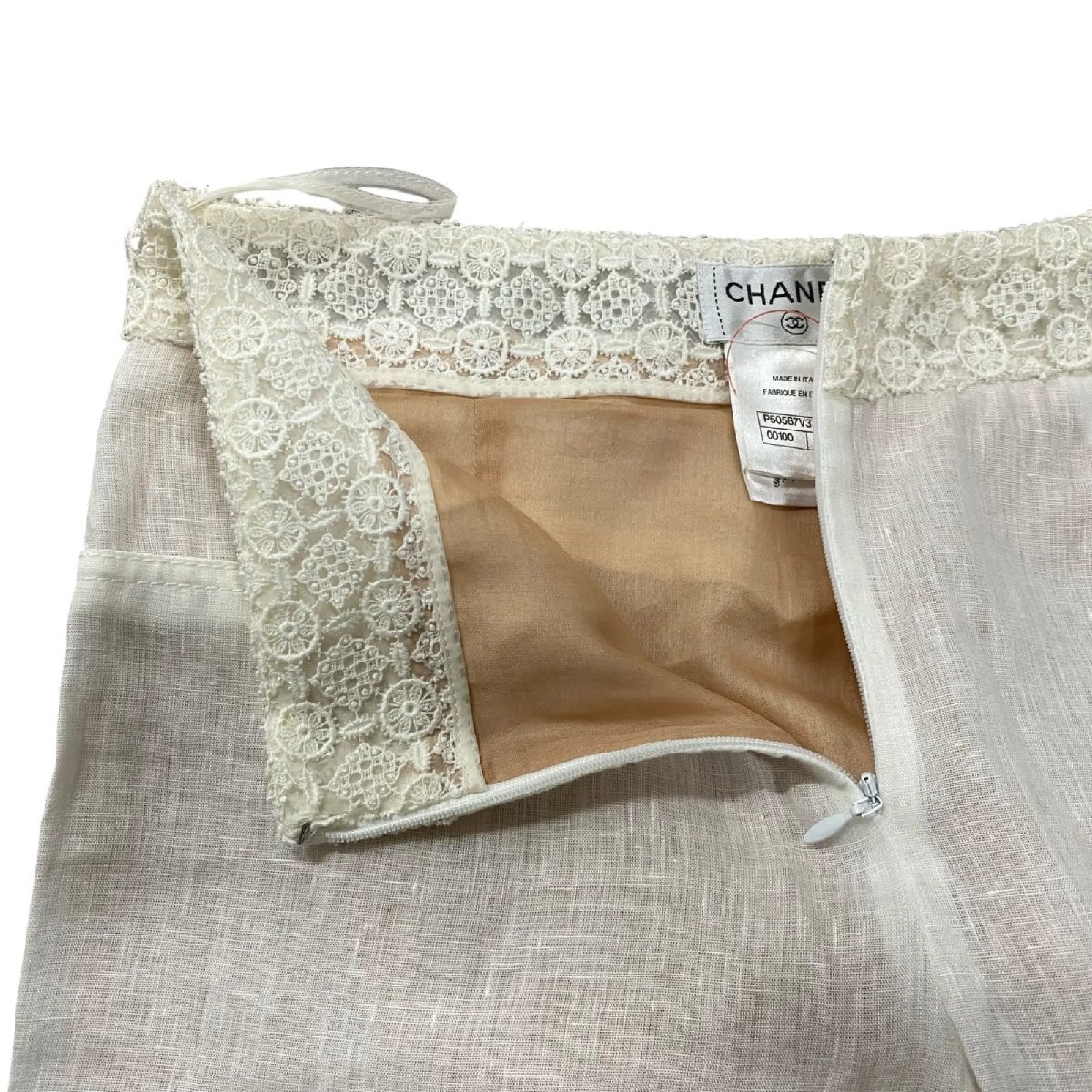 シャネル CHANEL パンツ カジュアル レース シアー リネン アイボリー 34、S、7号 レディース S5T517