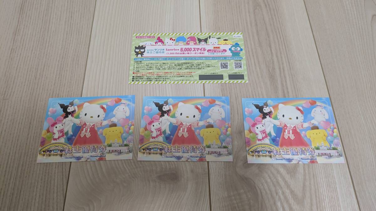 サンリオピューロランドの優待入場券3枚と商品券になります。有効期限は2026年1月31日までになります。