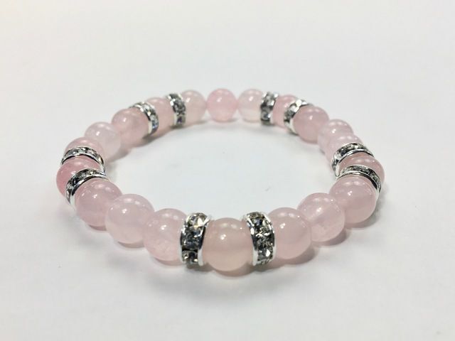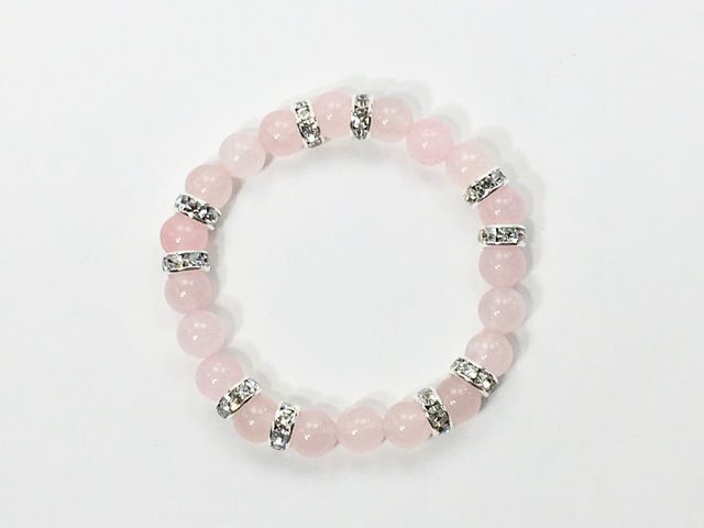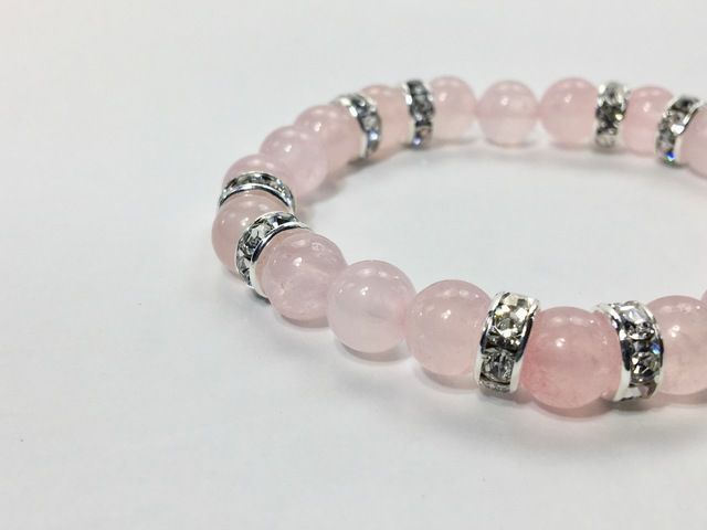 こちらは、8mm玉のローズクォーツを使ったパワーストーンブレスレットです。シンプルなデザインでどんなコーディネートにも合わせやすいデザインに仕上げています。サイズは内周約15cmです。気になる方は是非この機会にどうぞ。
