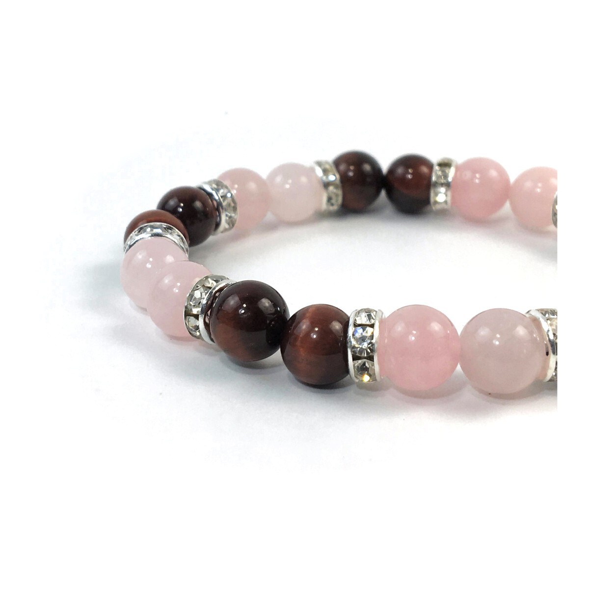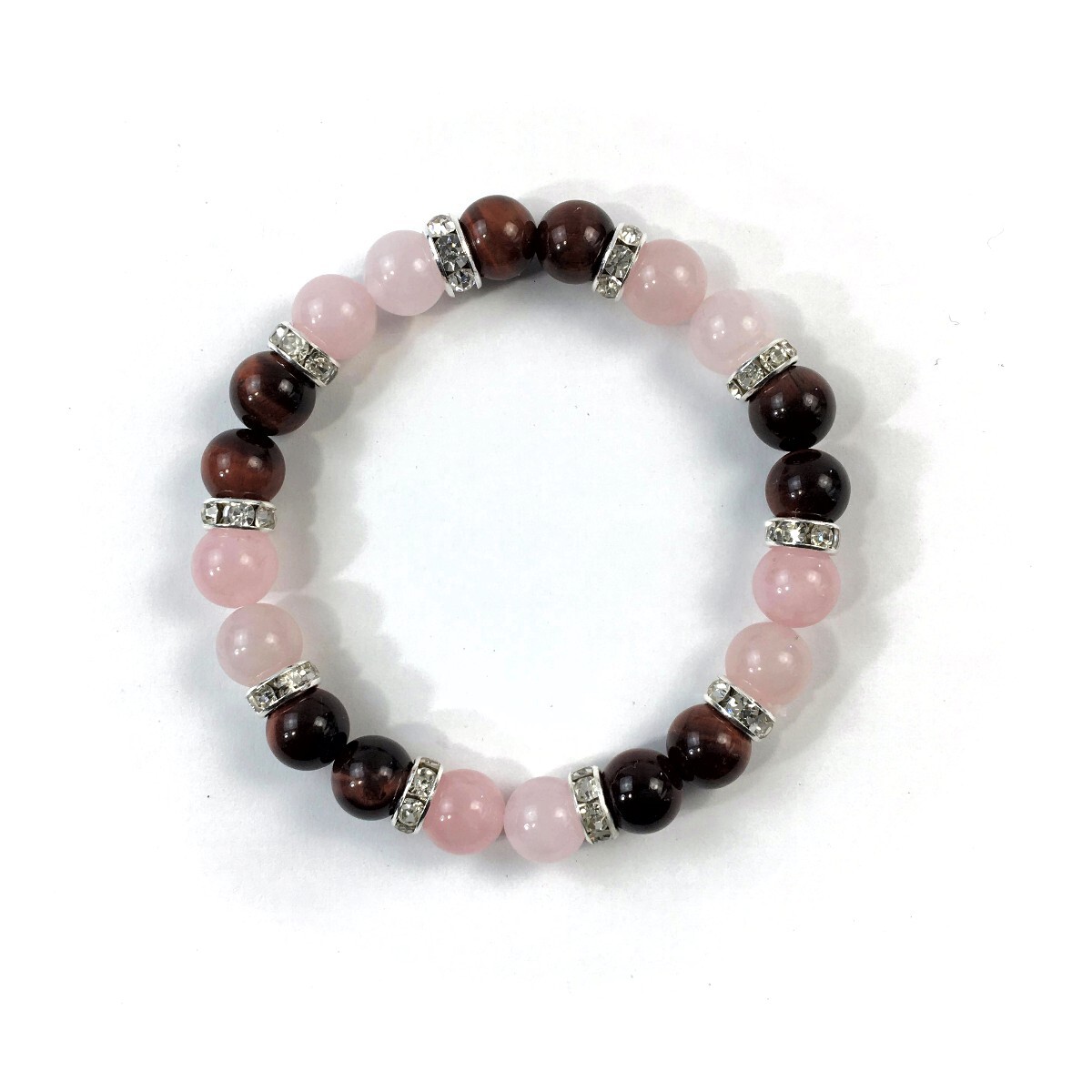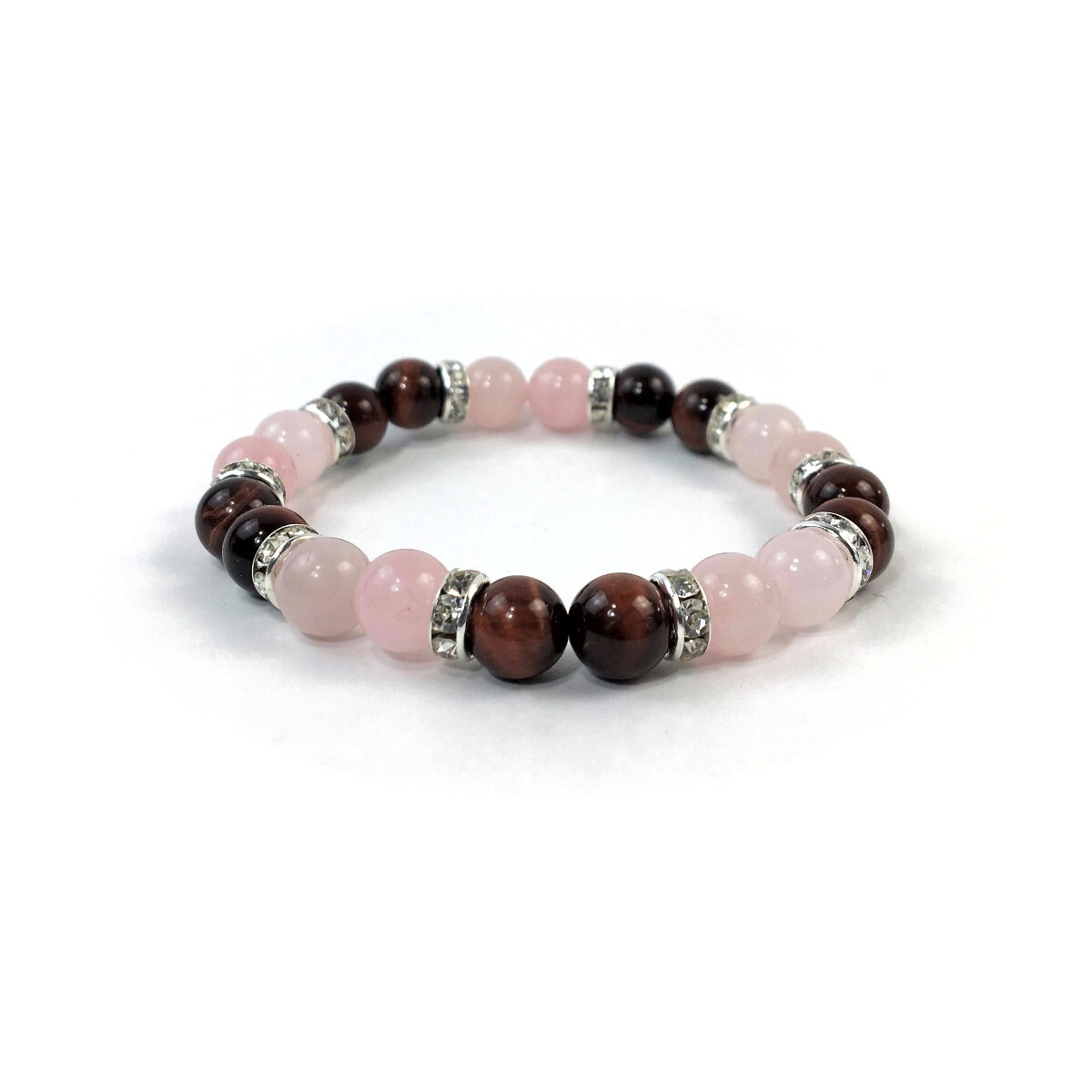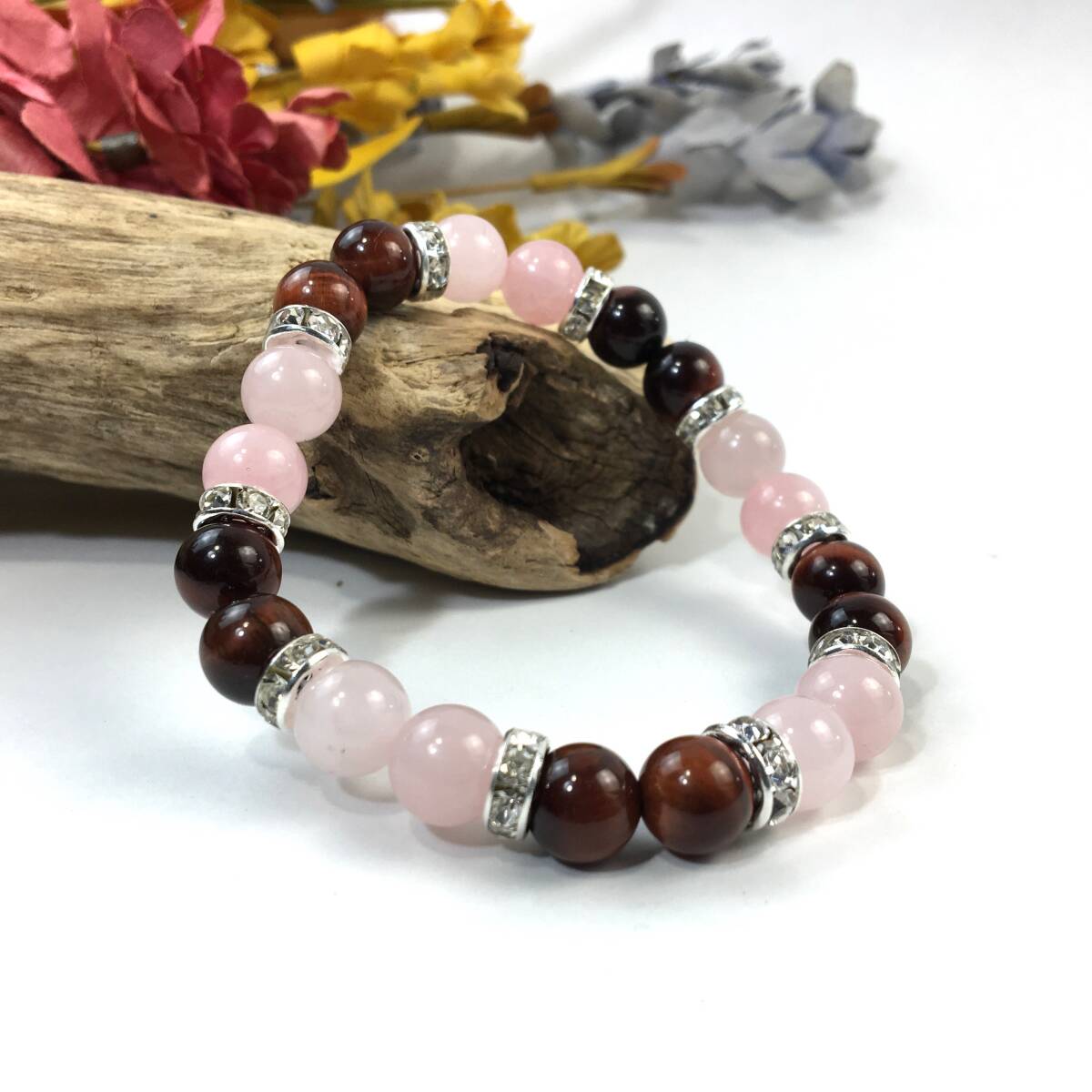 ローズクォーツ&レッドタイガーアイ パワーストーン ブレスレット 8mm 天然石ブレス シルバー / 浄化 美・愛 恋愛運 レディース ピンク