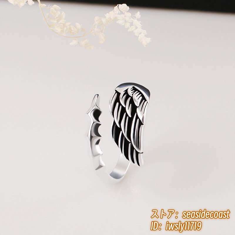 1円スタート★新品 指輪 シルバー925 天使の翼 リング メンズファッション アクセサリー 超希少 フリーサイズ 男女兼用 調整可能