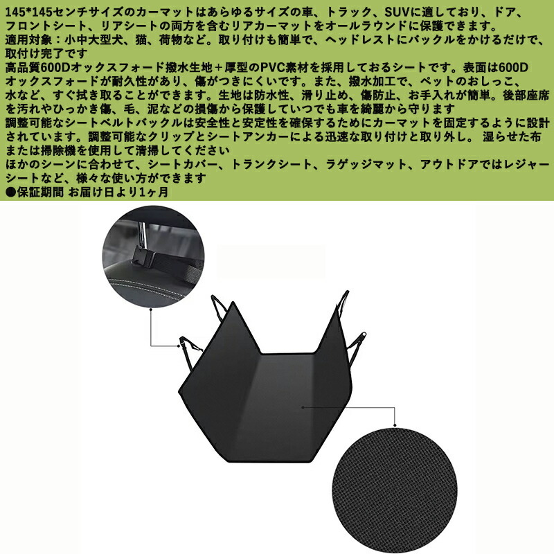生地は防水性、滑り止め、傷防止、お手入れが簡単。後部座席を汚れやひっかき傷、毛、泥などの損傷から保護していつでも車を綺麗から守ります