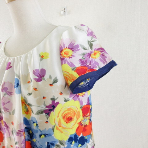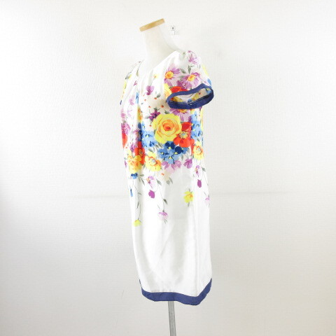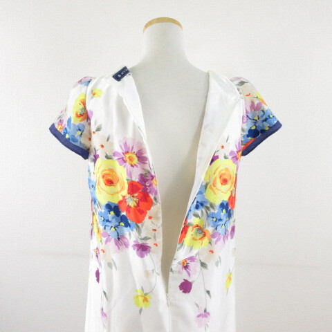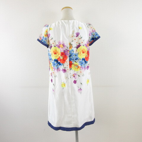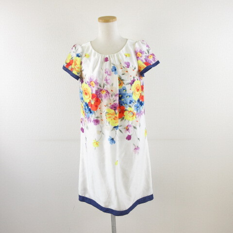 エムズグレイシー M'S GRACY ミニワンピース 半袖 花柄 白 青 36 *A212 レディース