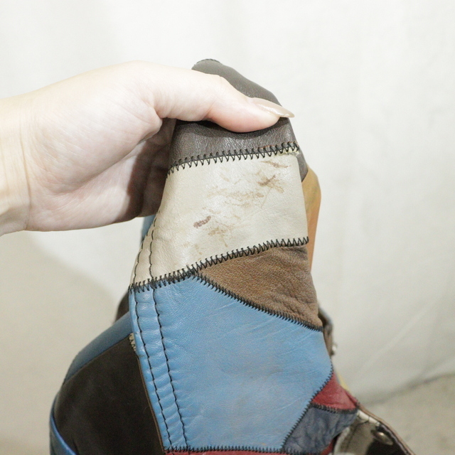 n936 70sビンテージ GENUINELEATHER パッチワーク レザージャケット■1970年代製 表記24サイズ レディース マルチカラー アメカジ 古着